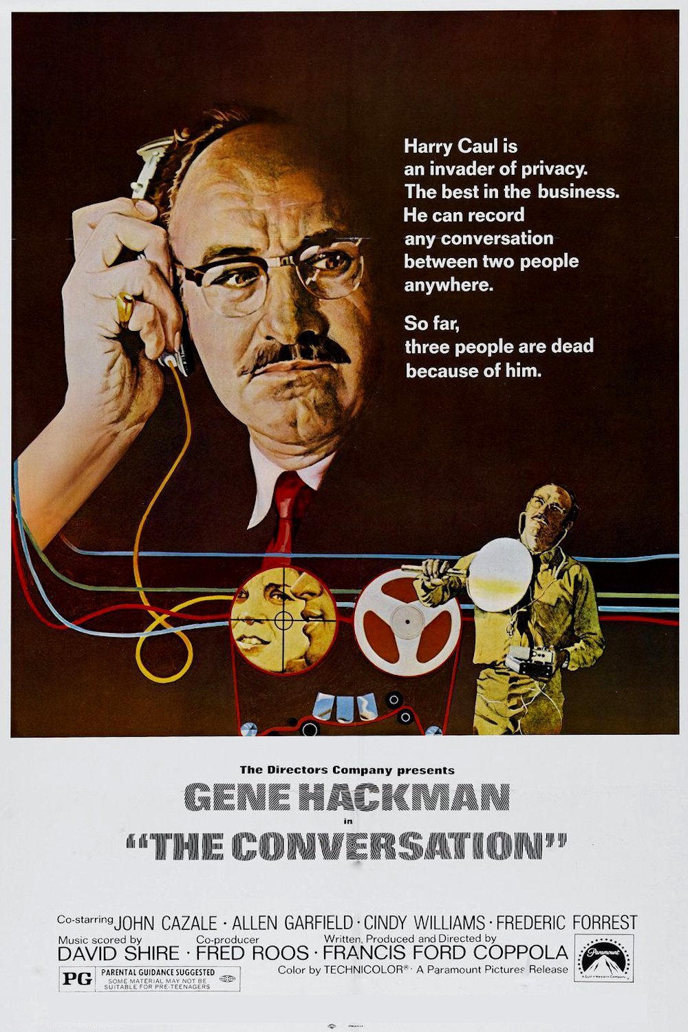 1974 yılında vizyona giren ABD yapımı film ile ilgili 1995 yılında Amerika Birleşik Devletleri Kongre Kütüphanesi tarafından 'kültürel, tarihi ve estetik olarak önemli' filmler arasına seçilerek ABD Ulusal Film Arşivi'nde muhafaza edilme kararı alınmış. Filmde işinin ehli bir gözetleme uzmanı olan Harry'ye esrarengiz ve güçlü bir işveren tarafından genç bir çifti takip edip casusluk yapma görevi verilir. Konuşmaları kayda alan Harry, çiftin bir cinayete kurban gideceğinden şüphelenmeye başlar. Yaptığı işi sorgularken, paranoya onu ele geçirir.
