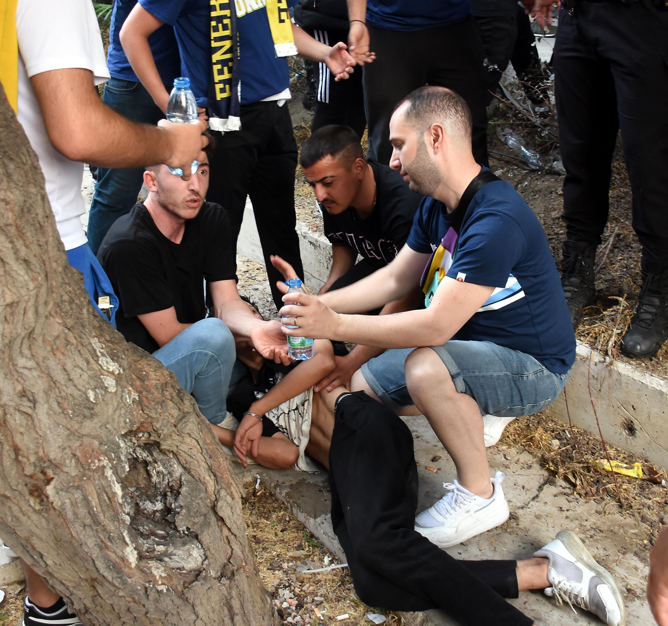 Çevik kuvvet ekipleri tribün girişindeki kargaşaya biber gazıyla müdahale etti. Olayda gazdan etkilenen bazı taraftarlar ambulansla hastaneye kaldırıldı.