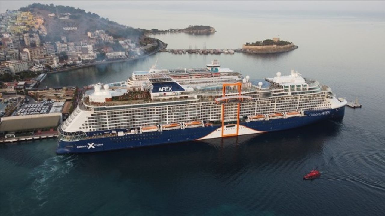 Ege ve Akdeniz turlarına çıkan dev gemilerin uğrak limanlarından Kuşadası'nda yaz sezonu hareketliliği devam ediyor. İlçedeki Ege Port Limanı, bugün sektörün en yeni gemilerinden olan ve Türkiye'ye ilk seferini düzenleyen 2 bin 910 kişi kapasiteli Celebrity Apex ile Azamara Quest ve Celestyal Olympia gemilerini ağırladı.