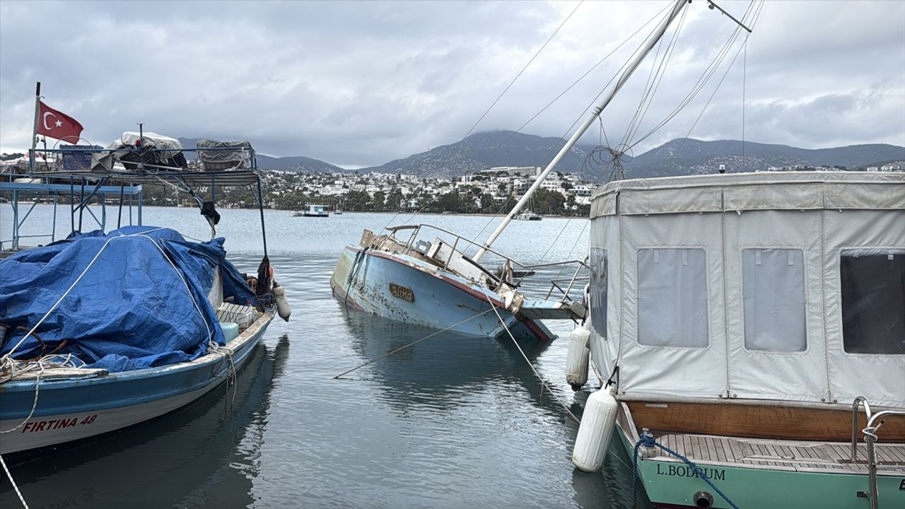 Gümbet Koyu'nda demirli yaklaşık 13 metrelik yelkenli tekne, kuvvetli rüzgar ve dalgaların etkisiyle su almaya başladı. Kısa sürede suyla dolan tekne yan yattı.