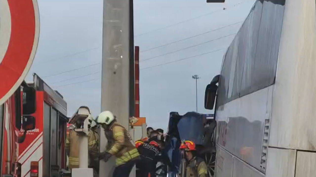 İstanbul Silivri'de Kuzey Marmara Otoyolu Kınalı mevkiinde otomobil ve otobüs çarpıştı.