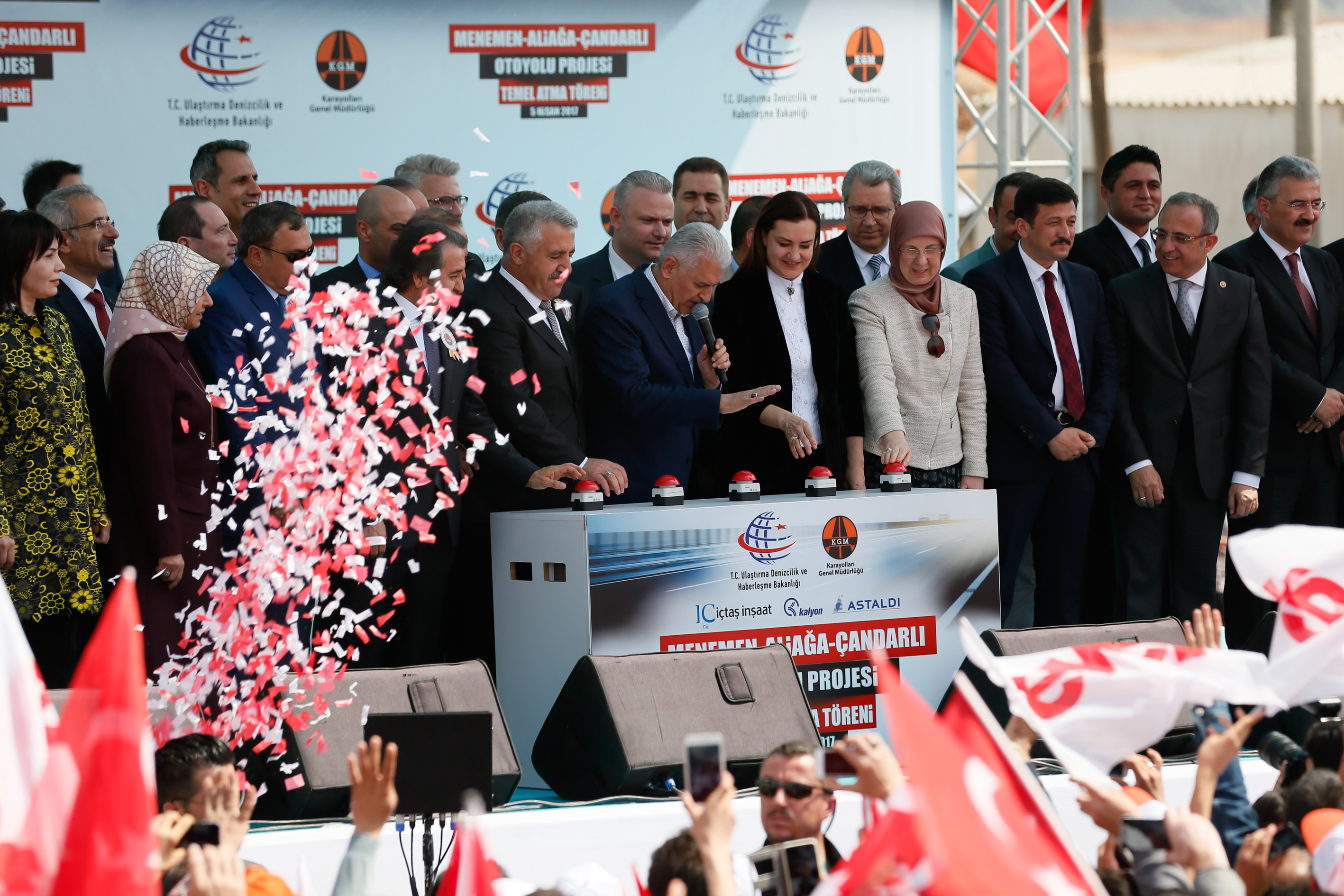 Başbakan Yıldırım, Menemen-Aliağa-Çandarlı Otoyolu Projesi'nin 2,5 yılda bitirileceğini ve 9 Eylül 2019'da hizmete gireceğini sözlerine ekledi.