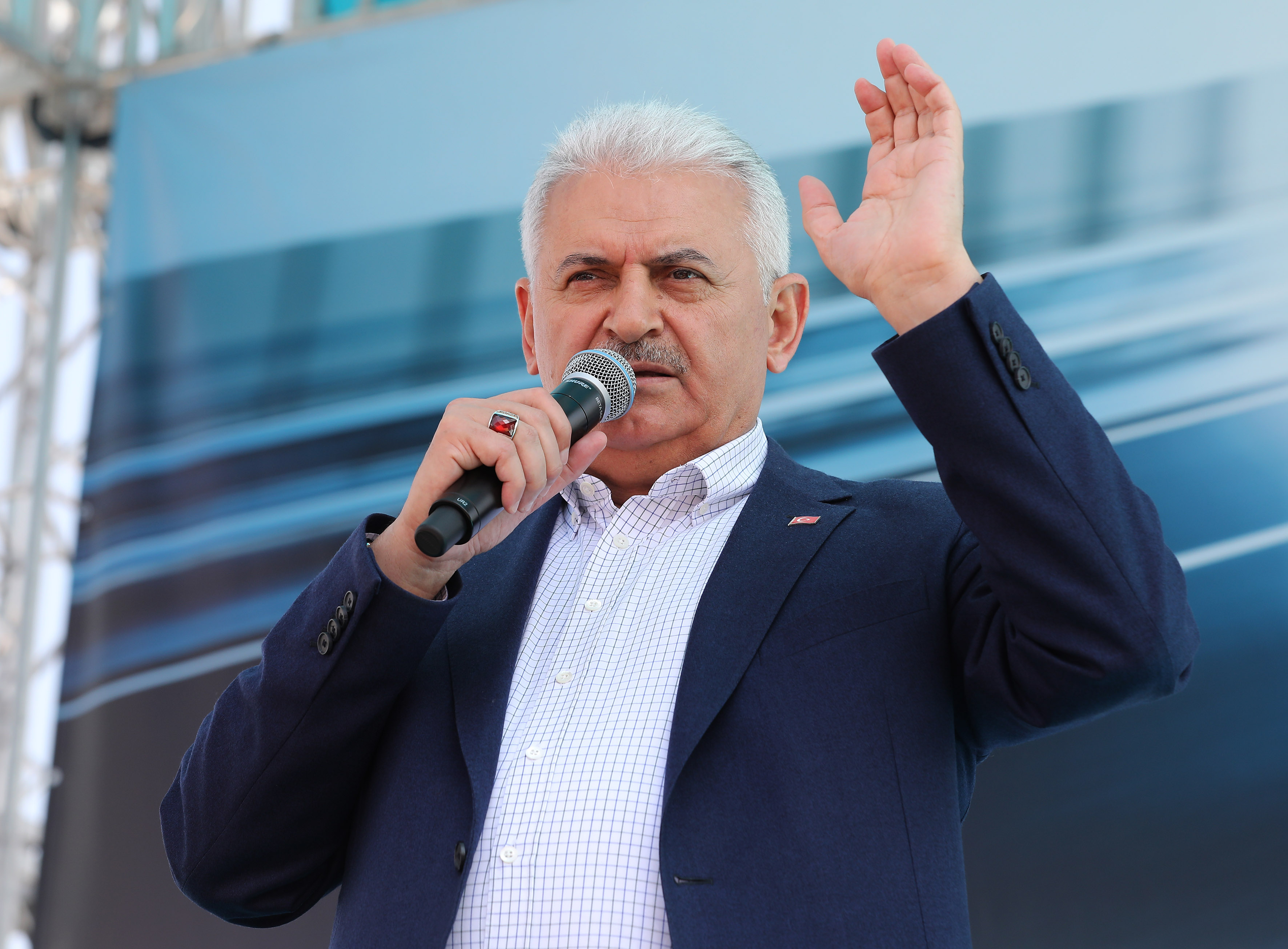 Anayasa değişikliğine yönelik tartışmalara değinen Yıldırım, şunları kaydetti: 'Kılıçdaroğlu'nun söylediği, 'bu anayasa değişmesin' dediği anayasa bu. Mercedes marka arabanız var, bir şerit gidiş, bir şerit geliş yolunuz var, kamyonunun arkasına takılıyorsunuz, saatlerce oradan gidiyorsunuz. Biz diyoruz ki 'yahu araba güzel ama yol yok. Onun için tek yolları bölünmüş yol yaptık. Anayasa yolu da artık köy yolu gibi, anayasayı otobana çevirmemiz lazım. Türkiye'nin gelişme hızına uygun hali getirmeniz lazım değil mi? Diyor ki 'boşver, araba olsun ama yola lüzum yok, biz her gün örtüsünü kaldırırız, sileriz, cilalarız, tekrar kapatırız, yol istemiyoruz.' Öyle bir şey olur mu? Ama bunlar yolu yaparken, tüneli yaparken, köprüyü yaparken karşı çıkar, hızlı treni yaparken karşı çıkar, 'hayır hayır' derler. Konak Tüneli'ni yapar yapmaz, 'Bismillah' demeden baktık onlar geçtiler, geçsinler ziyanı yok ama memleketin hızını kesmeyin kardeşim. Bizim büyük hedeflerimiz var, Büyük Atatürk'ün bize işaret ettiği muassır medeniyetler seviyesine ulaşma hedefimiz var, engel olmayın gölge etmeyin başka ihsan istemiyoruz.'