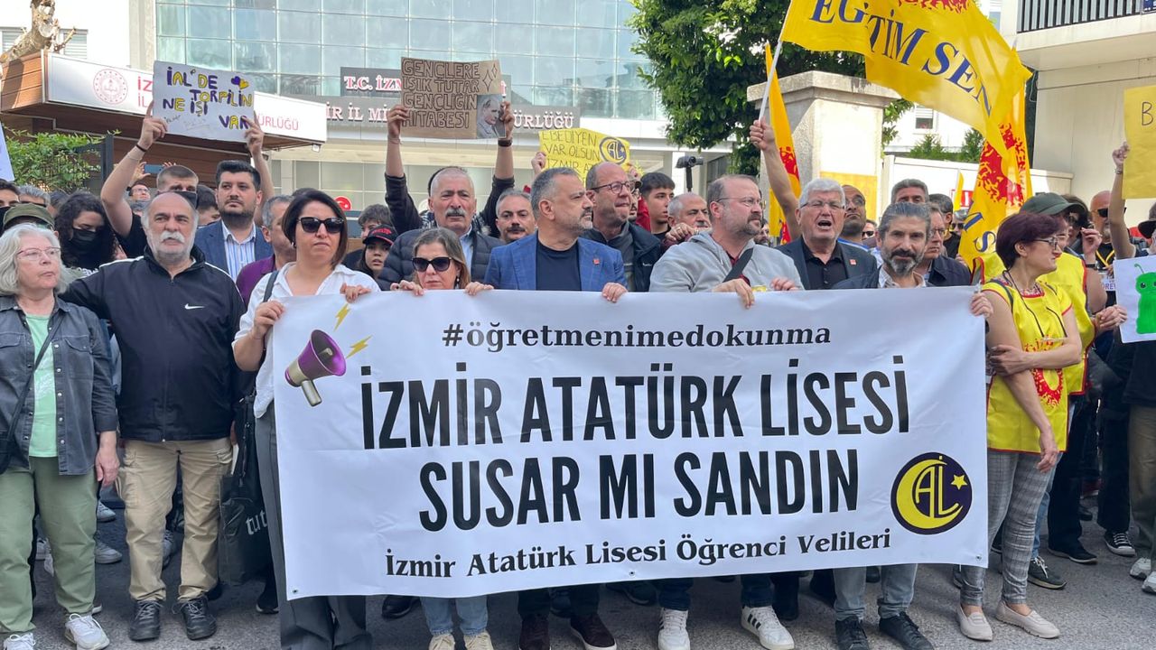 İzmir Atatürk Lisesi velileri okulda görev yapan 60 öğretmenin görevden alınmasına karşı yaptıkları eylemler bugün de sürüyor.