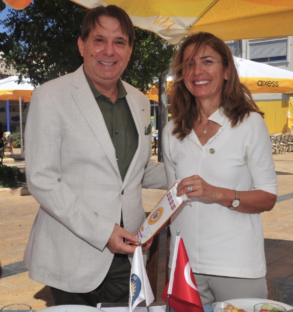İzmir Alsancak Lions Kulübü Derneği dönem Başkanı Şayan Saygılı, toplantı sonrası Tartan'a teşekkür plaketi verdi.