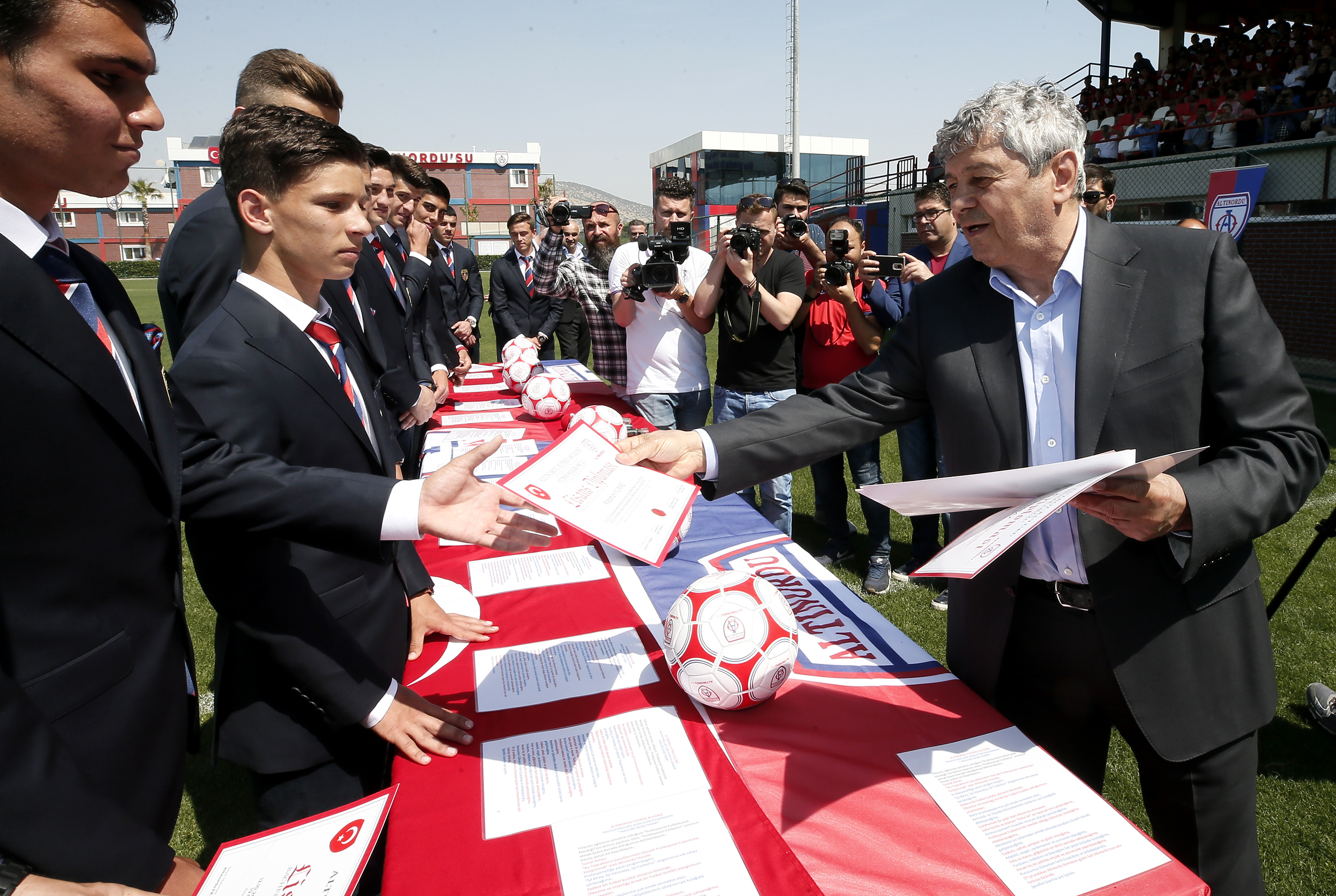 Her şeyin eğitimle başladığını vurgulayan Mircea Lucescu, 'Her konuda eğer eğitimi başa koyarak sonuç almamak mümkün değil. Altınordu'nun milli takımlar seviyesinde oyuncular yetiştirmesi çok normal. Kulübün başkanını, antrenörleri, yöneticileri, oyuncuları ve tüm çalışanları tebrik ediyorum. Eminim ki gelecek onların elinde ve onlara emanet' diye konuştu. Profesyonel sözleşme imzalayan 17 genç futbolcuya öğütlerde bulunan A Milli Takım Teknik Direktörü Lucescu, 'Profesyonel olarak futbol mesleğini yapmak, belli seviyeye gelmek için çok çalışmak lazım. Bugün sizin için inanılmaz bir kariyer başlangıcı. Futbol dünyanın en güzel mesleği, çünkü severek yaptığınız bir iş. En önemlisi ise seyirciye, yöneticiye, takım arkadaşlarına, rakiplerine ve kendine saygı duymak. Hepinize bol şans' şeklinde konuştu.