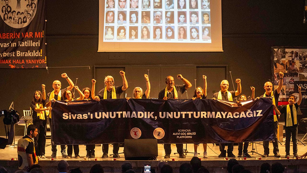 Madımak Katliamı’nı gerçekleştirenlerin amaçlarına ulaşamadıklarını belirten Pir Sultan Abdal Kültür ve Dayanışma Derneği Bornova Şube Başkanı Barış Çelik, “2 Temmuz 1993, insanlık tarihine kara bir gün olarak geçti. Şiirleriyle barışı savunanlar, düşünceleriyle özgürlüğü haykıranlar o gün diri diri yakıldı. Pir Sultan’ın, Nesimi’nin, Hallacı Mansur’un yolundan yürüyenler susturulmak istendi ama başaramadılar. Çünkü biz hâlâ buradayız. Biz unutmadık, unutmayacağız, unutturmayacağız” dedi.