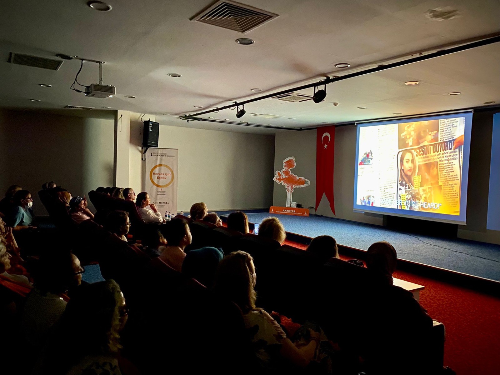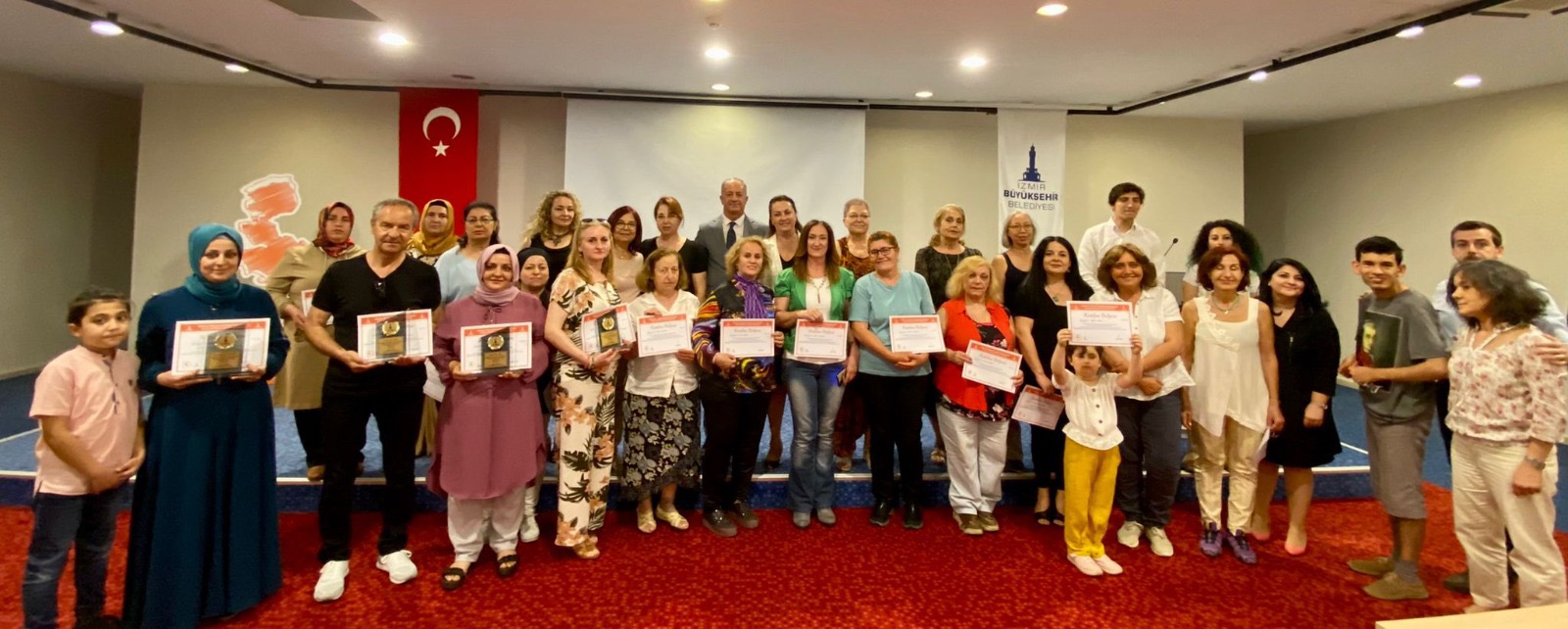 Konak-Kadifekale Atölyesi ve Örnekköy Mahallesi Atölyeleri'nin ürettiği dört filmin gösteriminin yapıldığı törende 39 kadın kursiyer sertifikalarını ve plaketlerini İzmir Büyükşehir Belediyesi Meclis Üyesi Nilay Kökkılınç ve İzmir Büyükşehir Belediyesi Genel Sekreter Yardımcısı Ertuğrul Tugay'dan aldı.