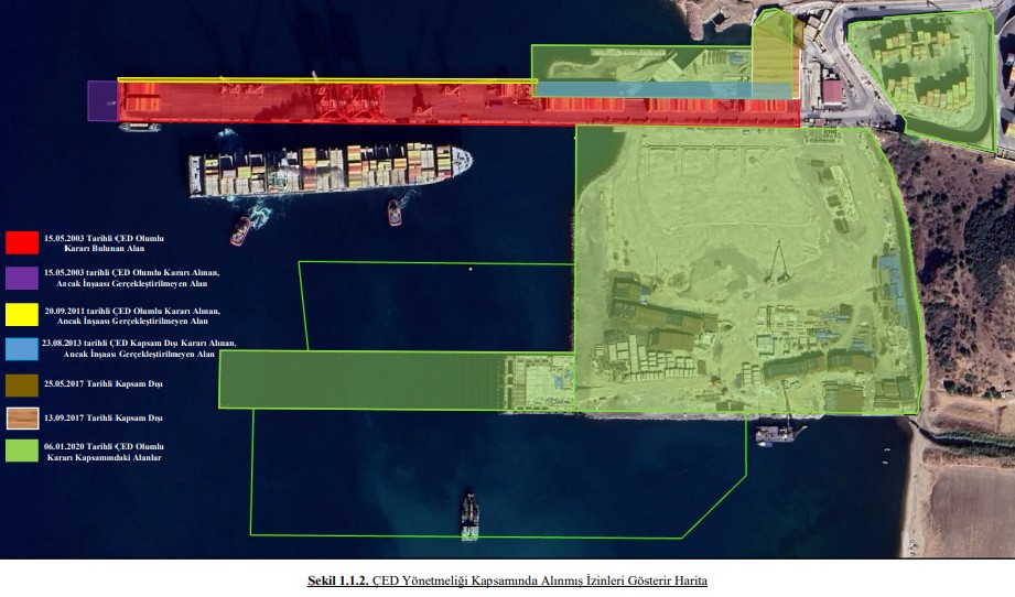 - Proje alanına siddetli yağıslar esnasında dereler ile taşınabilecek rüsubatın, yapımı süren yeni dolgu alanı ve iskele dahilinde Körfezde nasıl bir taşınıma uğrayacağı, yapımı süren yeni dolgu alanı ve iskelenin tamamlanması ile Körfezde mevcut diğer iskele ve yanaşma yapılarının konumları düşünüldüğünde Körfezdeki tüm dolgu ve yanaşma yapılarının etkilerinin kümülatif olarak ele alınması ile nasıl bir akıntı/sirkülasyon ve sediment taşınımı durumlarının oluşacağı, dip taramasından çıkan malzemenin tamamı veya belirli bir kısmının denizel mi yoksa karasal mı belli olmayan dökü alanlarına gönderileceği ve denizel ortamda ise bu durumun Körfez hidrodinamiğine nasıl etki edeceğine dair yeterince açıklama yapılmamış olduğu