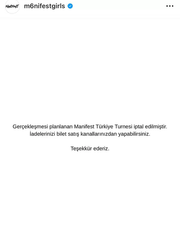"14, 16 ve 17 Eylül tarihlerinde gerçekleştirilecek Manifest konseri iptal edilmiştir.