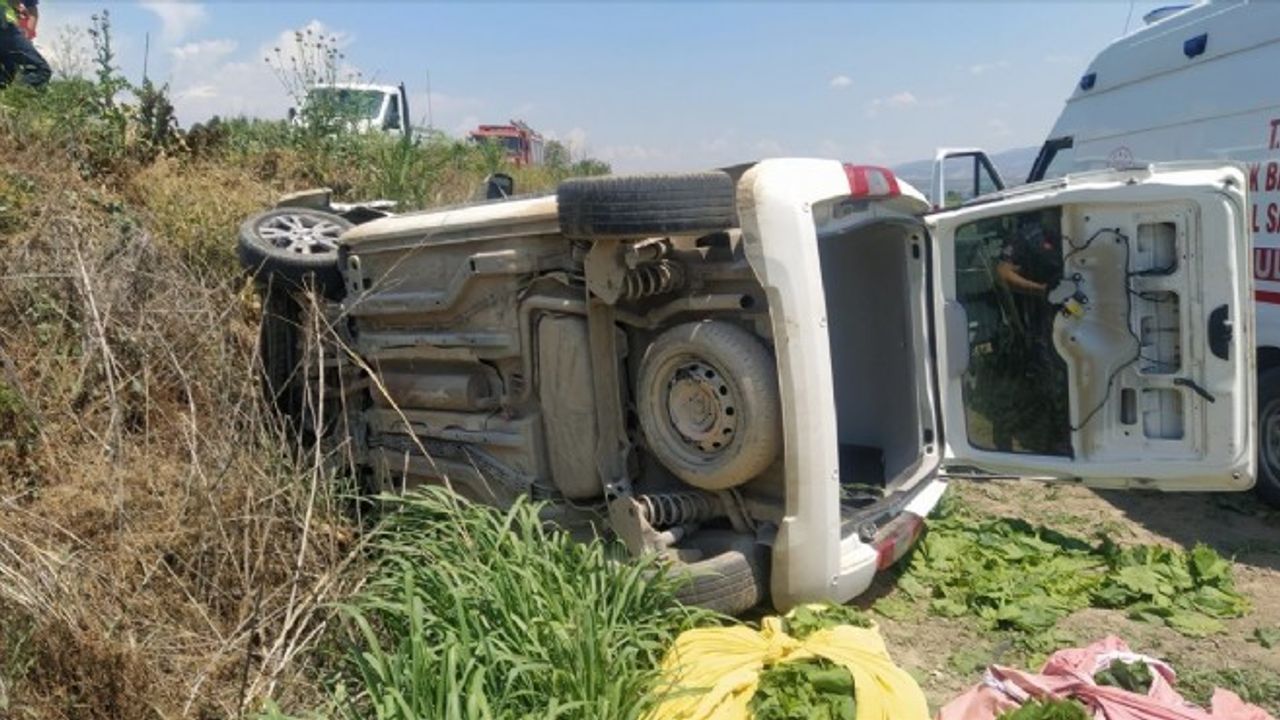 M.S'nin (35) kullandığı 45 UC 704 plakalı hafif ticari araç, Çapaklı Mahallesi'nde kontrolden çıkarak şarampole devrildi.