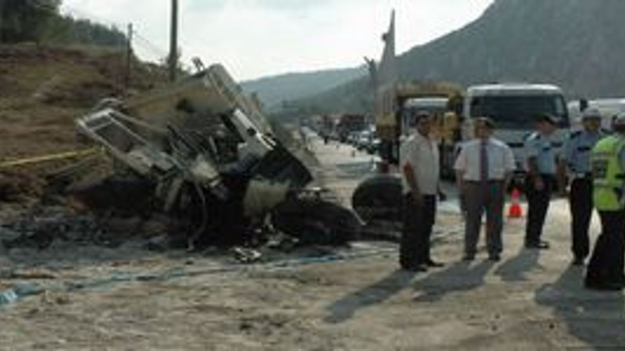 Su tahliye kanalına devrilen kamyon parçalara ayrılırken, kasadaki tonlarca çimento yola saçıldı. Kamyon sürücüsü Fuat Duman kazada ağır yaralanırken, yanında bulunan Makedonya uyruklu işçi Hüsamettin İsmailoğlu olay yerinde hayatını kaybetti. Sürücü koltuğunda mahsur kalan Fuat Duman, itfaiye ve 112 ekiplerince kurtarılarak Manisa Devlet Hastanesi'ne kaldırıldı. Duman'ın hayati tehlikesi nedeniyle yoğun bakıma alındığı öğrenildi.