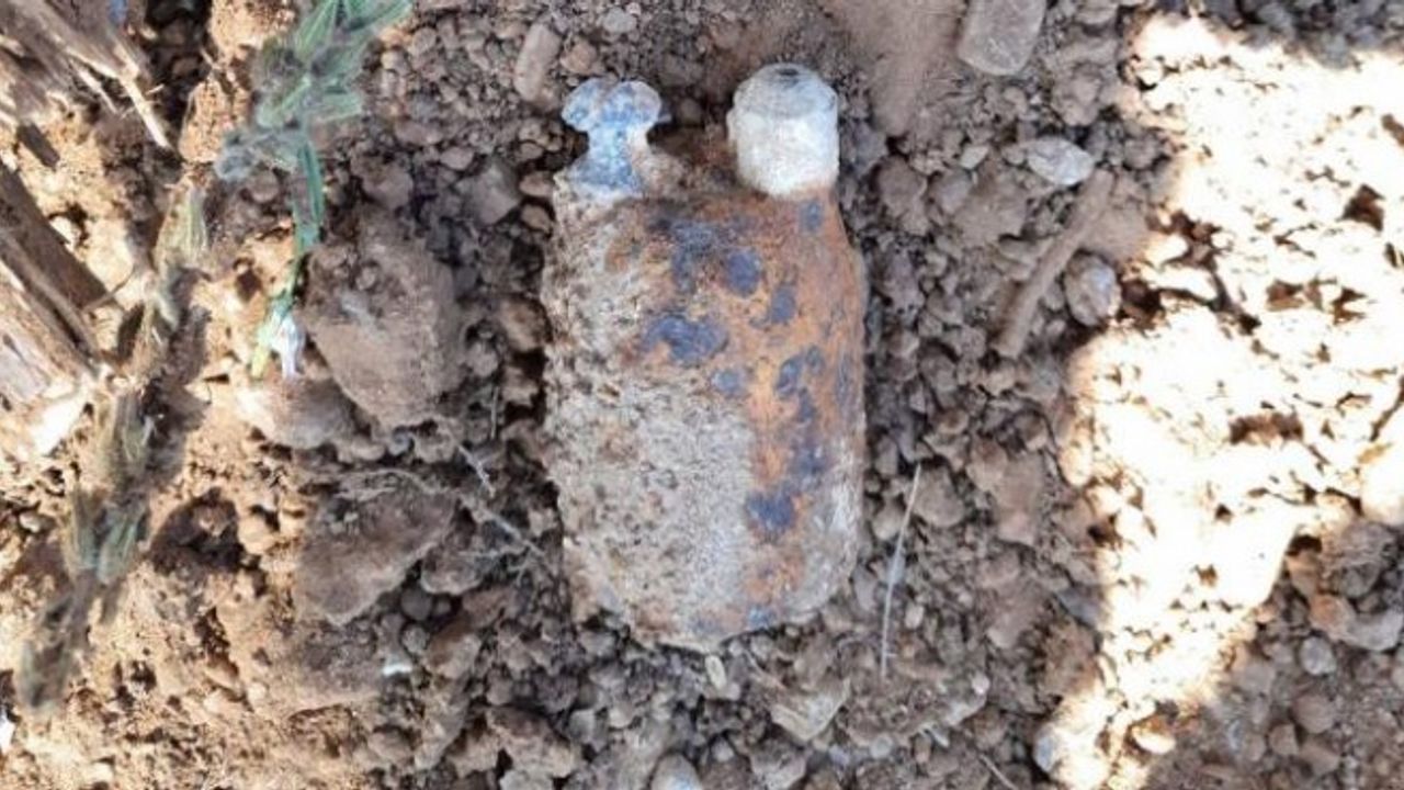 Milli Mücadele dönemine ait olduğu değerlendirilen küflü ve paslı patlamamış el bombasının imha edileceği açıklandı. (AA)