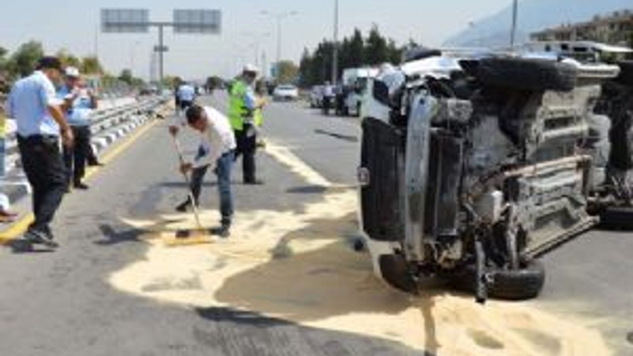 Manisa'nın Yunusemre İlçesi'nde, iddiaya göre, bir otomobilin sıkıştırdığı ekip otosu polis memurunun kontrolünden çıkarak takla attı. Kazada, araçtaki 2 polis memuru hafif yaralandı.