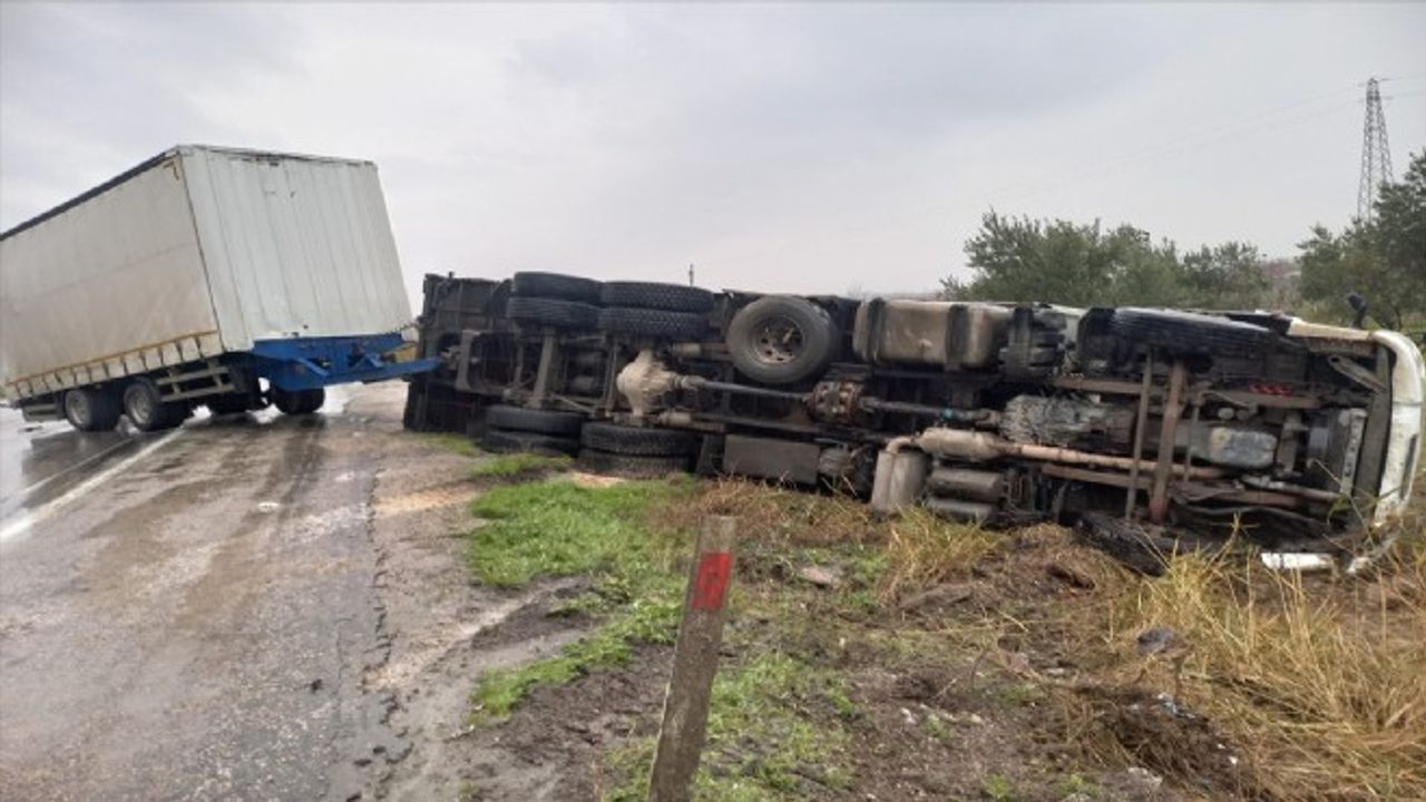 A.D. yönetimindeki 45 AT 927 plakalı tır Turgutlu kara yolu Hamalınkırı bölgesinde yoldan çıkarak zeytin tarlasına devrildi.