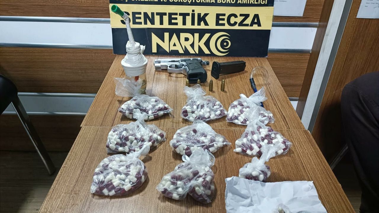 Kula İlçe Emniyet Müdürlüğü ekipleri, dün şüphe üzerine bir otomobili durdurdu. Otomobilde ve içindeki 5 kişinin üzerlerinde arama yapıldı. Aramada 479 sentetik hap ve uyuşturucu içmekte kullanılan 2 düzenek ele geçildi. M.D. S.K., M.S.G., M.E. ve M.Ç. gözaltına alındı. Şüphelilerin evinde de aynı gece yapılan aramada; kurusıkı 1 tabanca, 4 mermi ve uyuşturucu satışına yönelik deliller ele geçirildi. Şüphelilerden M.D., polisteki işlemlerinin ardından bugün adliyeye sevk edilirken, diğer 4'ü serbest bırakıldı. (DHA)