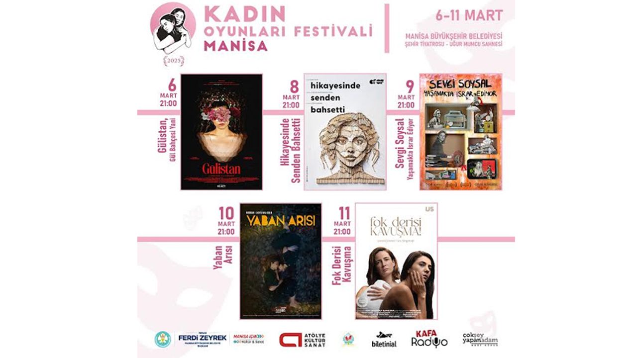 Kadın Oyunları Festivali, 6-11 Mart tarihleri arasında tiyatroseverlerle buluşarak, kadınların toplumsal yaşamdaki yerini, karşılaştıkları zorlukları ve özgürlük mücadelelerini sanatın gücüyle anlatmayı amaçlıyor. 8 Mart Dünya Emekçi Kadınlar Günü kapsamında tiyatro oyunlarının yanı sıra resim sergileri ve gece yürüyüşü de düzenlenecek.