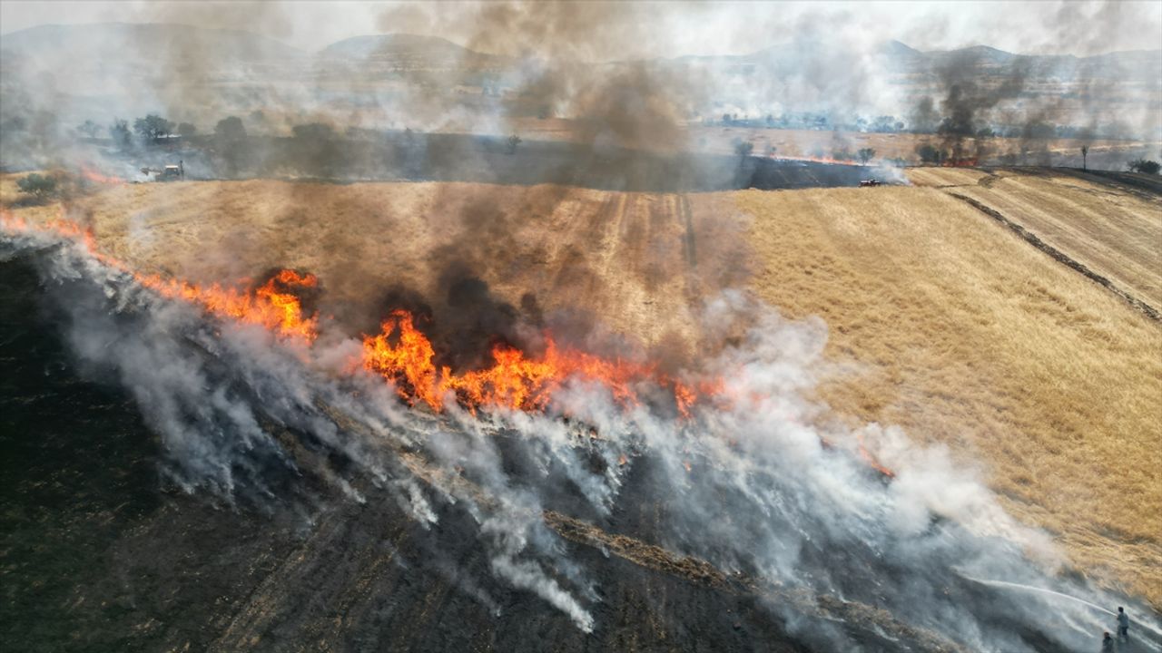 Körez Mahallesi'nde buğday ekili tarlada henüz belirlenemeyen nedenle yangın çıktı.