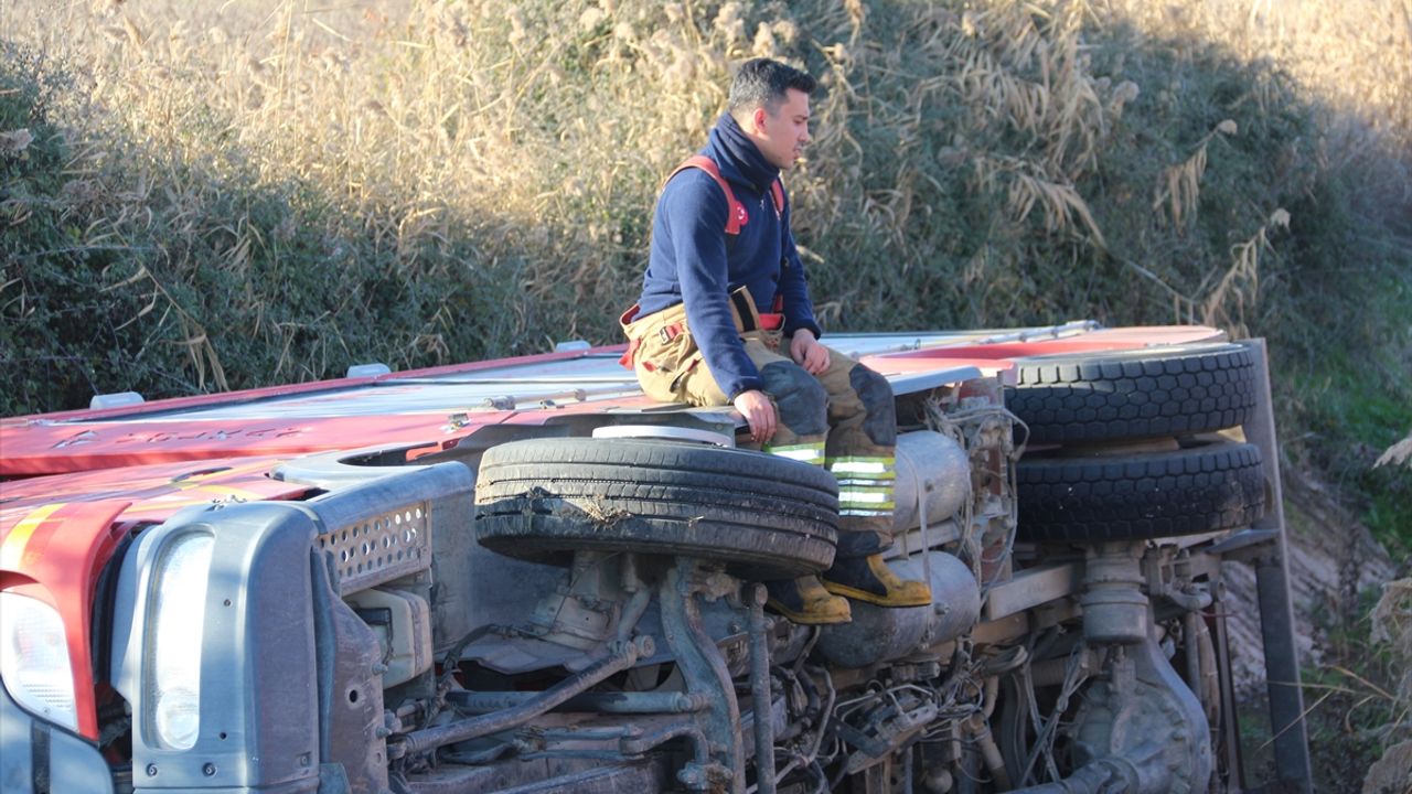 Alınan bilgiye göre, 112 Acil Çağrı Merkezine yapılan ot yangını ihbarını değerlendirmek üzere harekete geçtiği öğrenilen Manisa Büyükşehir Belediyesi İtfaiyesi aracı, Hacırahmanlı Mahallesi yakınlarında kontrolden çıkarak su kanalına devrildi.
