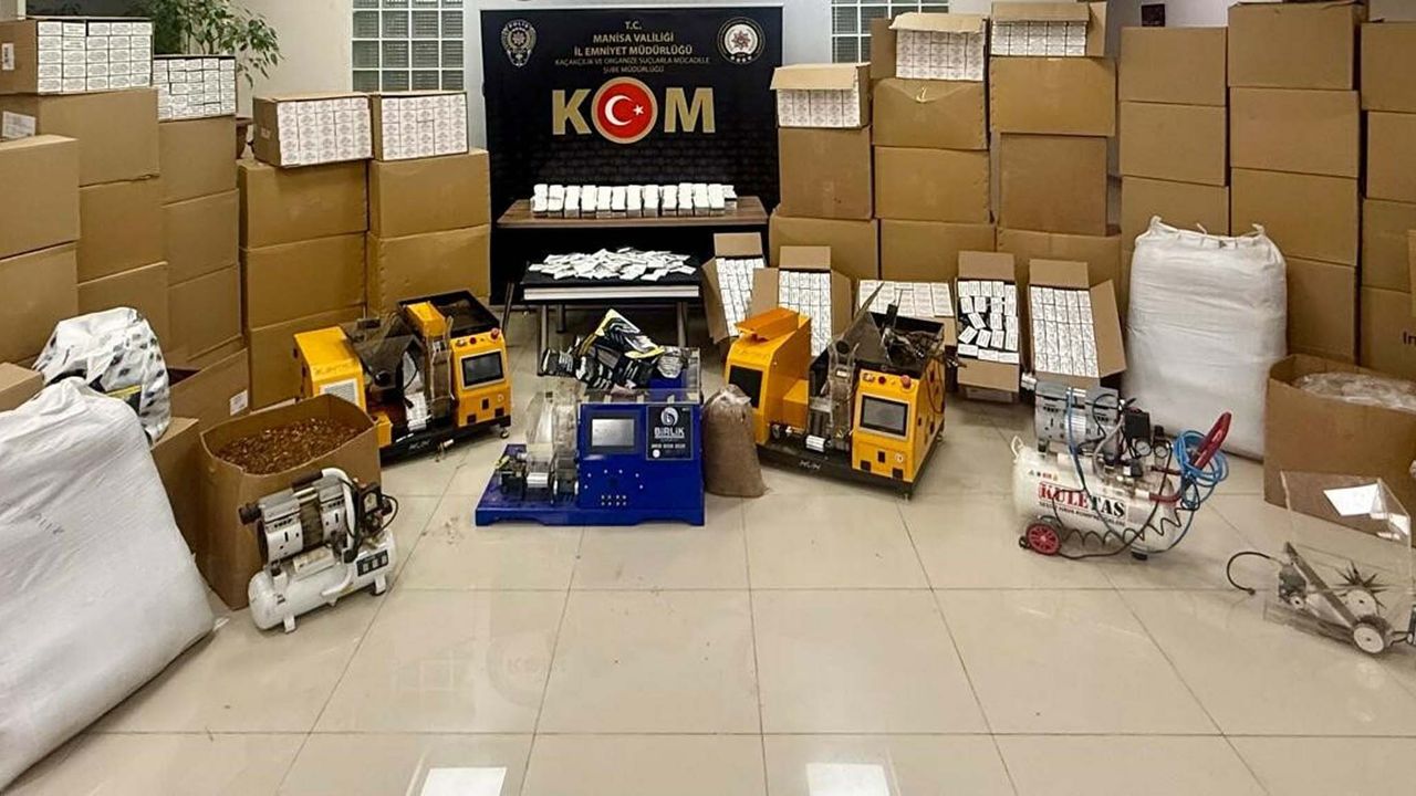 Manisa İl Emniyet Müdürlüğü Kaçakçılık ve Organize Suçlarla Mücadele Şube Müdürlüğü ekipleri, tütün ve tütün mamulleri kaçakçılığına yönelik çalışma yürüttü. Bu kapsamda E.Ç.'nin (36) adresine operasyon düzenlendi. Evde yapılan aramalarda 402,5 kilogram kıyılmış tütün, 29 bin 900 doldurulmuş sigara ve 430 bin boş makaron, 1 elektrikli tütün parçalama makinesi, 2 kompresör, 3 otomatik sigara sarma makinesi ele geçirildi.