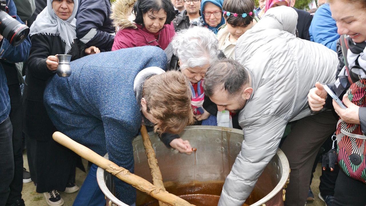 Kazan tören sonrası platformdan aşağıya indirildi. Törene katılanlar, kazandan mesir macunu alabilmek için birbirleriyle kıyasıya yarıştı. Bazı vatandaşlar mesir macununu parmakları ile tadarken, bazıları getirdikleri kaplara mesir macunu doldurabilmek büyük çaba sarf etti. Mesir macunu almak isteyenler, izdihama neden oldu. Bazı vatandaşların üzerine izdiham sırasında mesir macunu bulaştı.