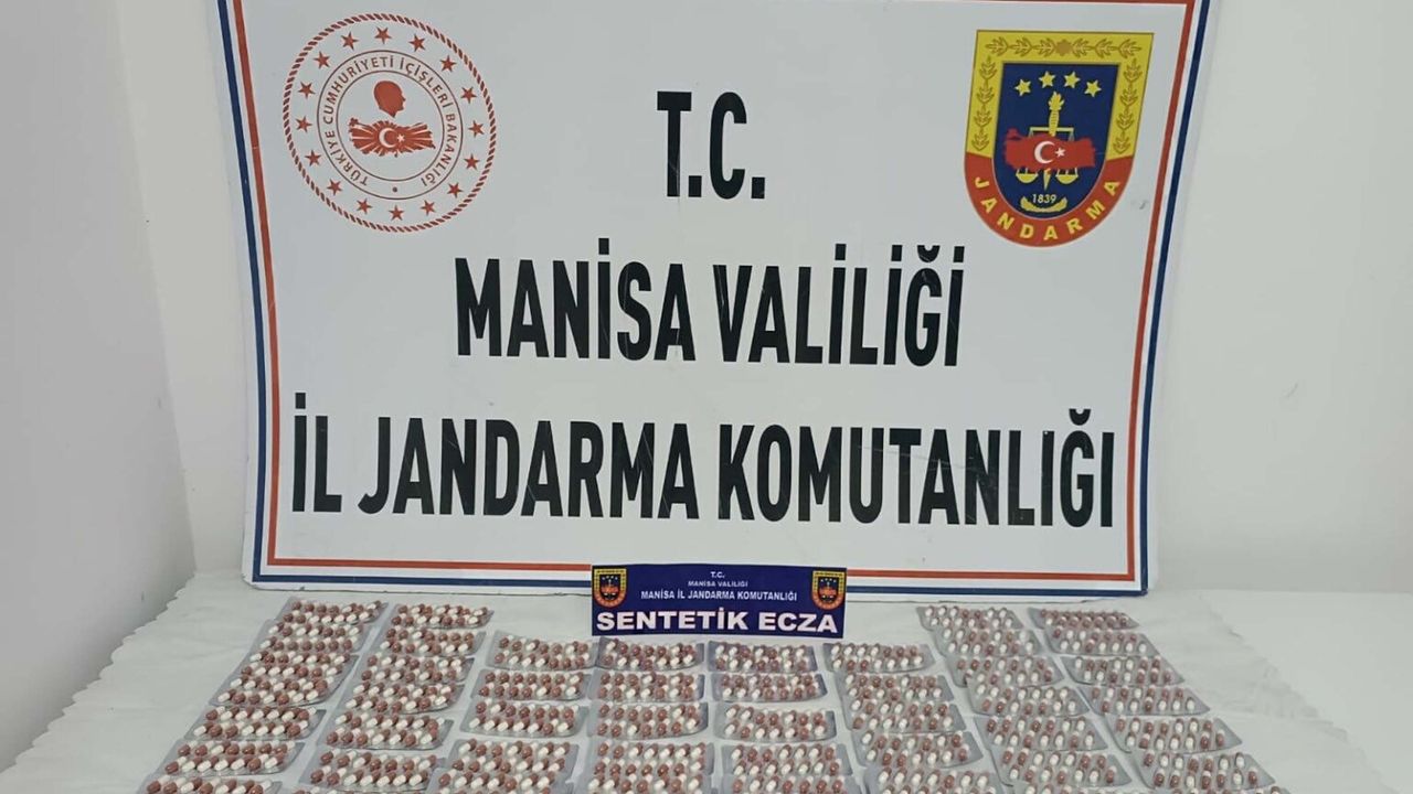 Manisa'nın Saruhanlı ilçesinde jandarma ekiplerince bir iş yerine düzenlenen uyuşturucu operasyonunda bin 67 adet sentetik ecza hap ele geçirildi, 1 şüpheli gözaltına alındı.