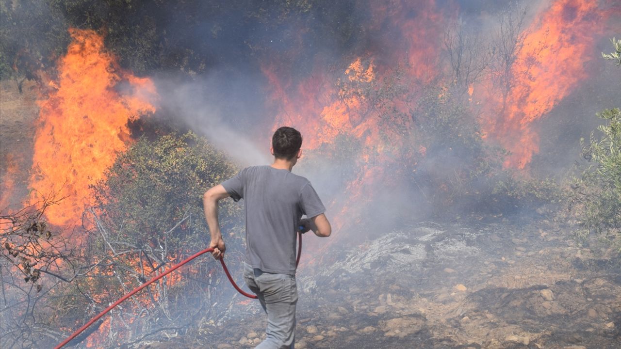 Vatandaşlar da traktörlerindeki su tanklarıyla yangına müdahalede bulundu.