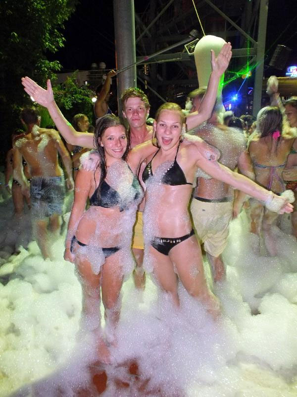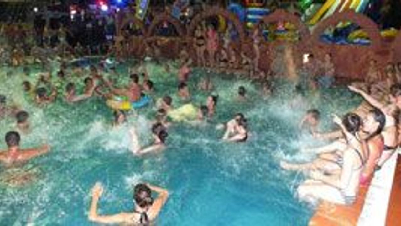 MUĞLA - Haftanın bir günü 21.30- 23.00 saatleri arasında düzenlenen partiye Hollandalı, İngiliz ve Rus genç turistler ilgi gösterdi. Alkolün su gibi tüketildiği partide kadın ve erkek turistler DJ'in çaldığı hareketli müzikler eşliğinde köpükler içinde dans etti, havuzda oyunlar oynadı, kaydıraklardan kaydı, derkli görüntüler oluşturdu. Marmaris Aqua Park İşletmecisi Özer Sağlam, sınırsız eğlencenin turizm sezonu sonuna kadar devam edeceğini söyledi.(DHA)