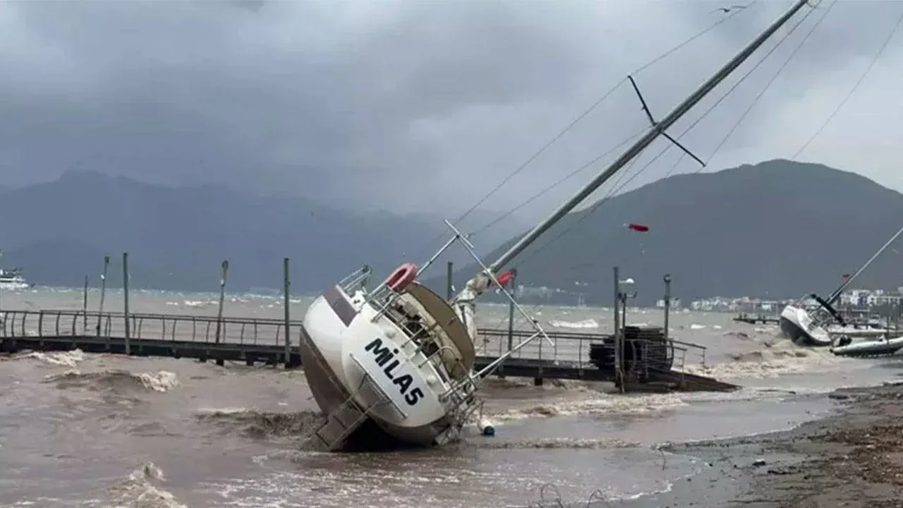 Etkisini arttırarak devam eden sağanak nedeniyle bazı bölgelerde su birikintileri oluşurken, kuvvetli rüzgar nedeniyle bağlı bulunduğu tonozdan kopan 'San Marino' ve 'Mila 5' isimli yelkenli tekneler, karaya vurdu.