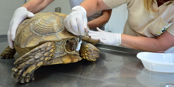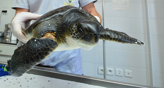 Öte yandan Orman ve Su İşleri Müdürlüğü İzmir Şubesi ekipleri tarafından bulunan yaralı yeşil su kaplumbağası da İzmir Doğal Yaşam Parkı'na getirildi. Balıkçılarının ağına takılarak ön yüzgecinden yaralandığı tahmin edilen yeşil su kaplumbağasının tedavisi parkın uzman personeli tarafından özenle yapılıyor. Antibiyotik tedavisi uygulanan yaralı kaplumbağa, sağlığına kavuştuktan sonra tekrar doğaya salınacak.