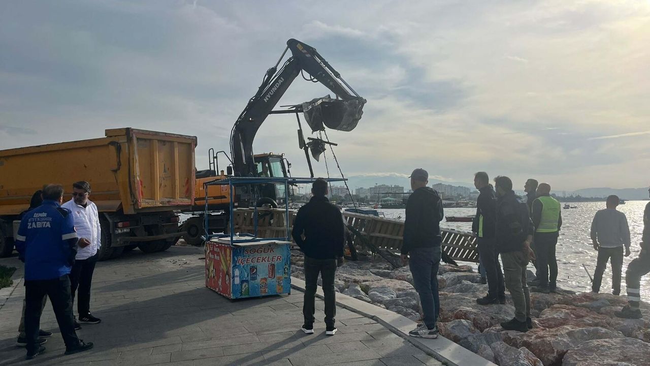 İzmir'in Karşıyaka ilçesindeki kaçak balıkçı barınakları ve iskeleler için başlatılan yıkım çalışmasına ilişkin İzmir Büyükşehir Belediyesi tarafından yazılı bir açıklama yapıldı. Açıklamada, "İzmir Büyükşehir Belediyesi Hemşehri İletişim Merkezi (HİM) ve Cumhurbaşkanlığı İletişim Merkezi'ne (CİMER) yapılan başvurular doğrultusunda, Bostanlı Balıkçı Barınağı ile Deniz Kafe arasında kalan kıyı bölümünde Kıyı Kanunu ve İmar Kanunu'nun ilgili yönetmeliklerine aykırı şekilde izinsiz yapılan platformlar ve ahşap iskeleler kaldırılıyor. Bu bölgede oluşturulan düzeneklerin üzerine masa konulmak suretiyle özellikle geceleri izinsiz ticari faaliyetlerin gerçekleştirilmesi ve çevrede yaşayan vatandaşların şikayetleri doğrultusunda harekete geçildi. İzmir Büyükşehir Belediyesi Yapı Kontrol Dairesi Başkanlığı koordinesindeki ekiplerin tespitleri çerçevesinde yıkımlar başladı. İzmir Büyükşehir Belediyesi yetkilileri, mevzuat kapsamında Karşıyaka Kaymakamlığı, Sahil Güvenlik Komutanlığı, İlçe Emniyet Müdürlüğü, Liman Dairesi Başkanlığı ve ilgili birimlerin temsilcileri ile toplantı yaparak işlem hakkında bilgilendirmede bulundu" denildi. (DHA)