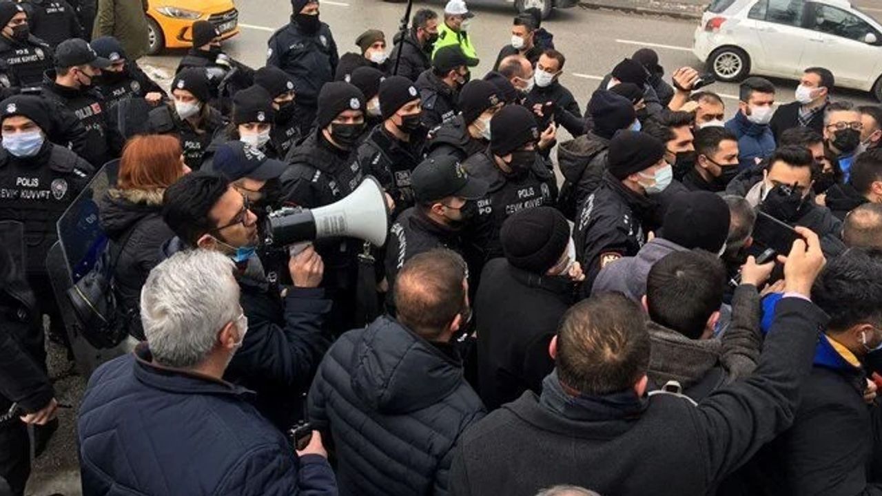 Ancak polis ekipleri, izinsiz olduğu gerekçesiyle basın açıklaması yapılmasına izin vermedi.