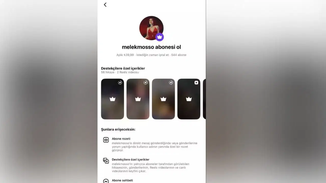 Ünlü sanatçı Melek Mosso, sosyal medya platformu Instagram üzerinden hayranlarına özel içerikler sunmak amacıyla bir abonelik sistemini devreye soktu.