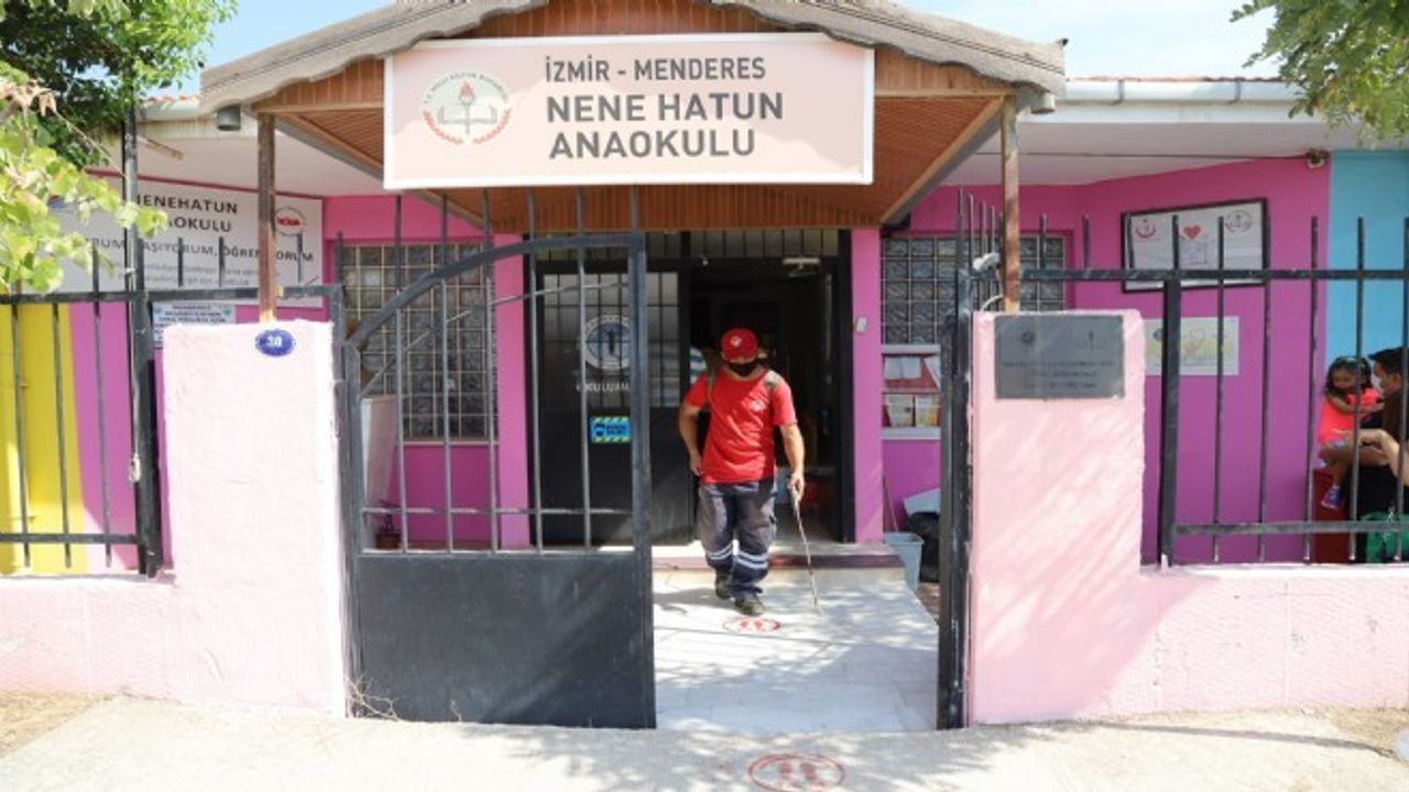 Menderes Belediyesi Temizlik İşleri Müdürlüğü tarafından ilçede Pazartesi günü yüz yüze eğitime açılacak anaokulu ve ilkokullarda dezenfeksiyon çalışması gerçekleştirildi. Sağlık Bakanlığı onaylı ilaçlarla gerçekleşen dezenfeksiyon çalışmaları okulların iç ve dış tüm alanlarında yapıldı. Pazartesi günü çocuklara eğitim seti de Menderes Belediyesi tarafından hediye edilecek.
