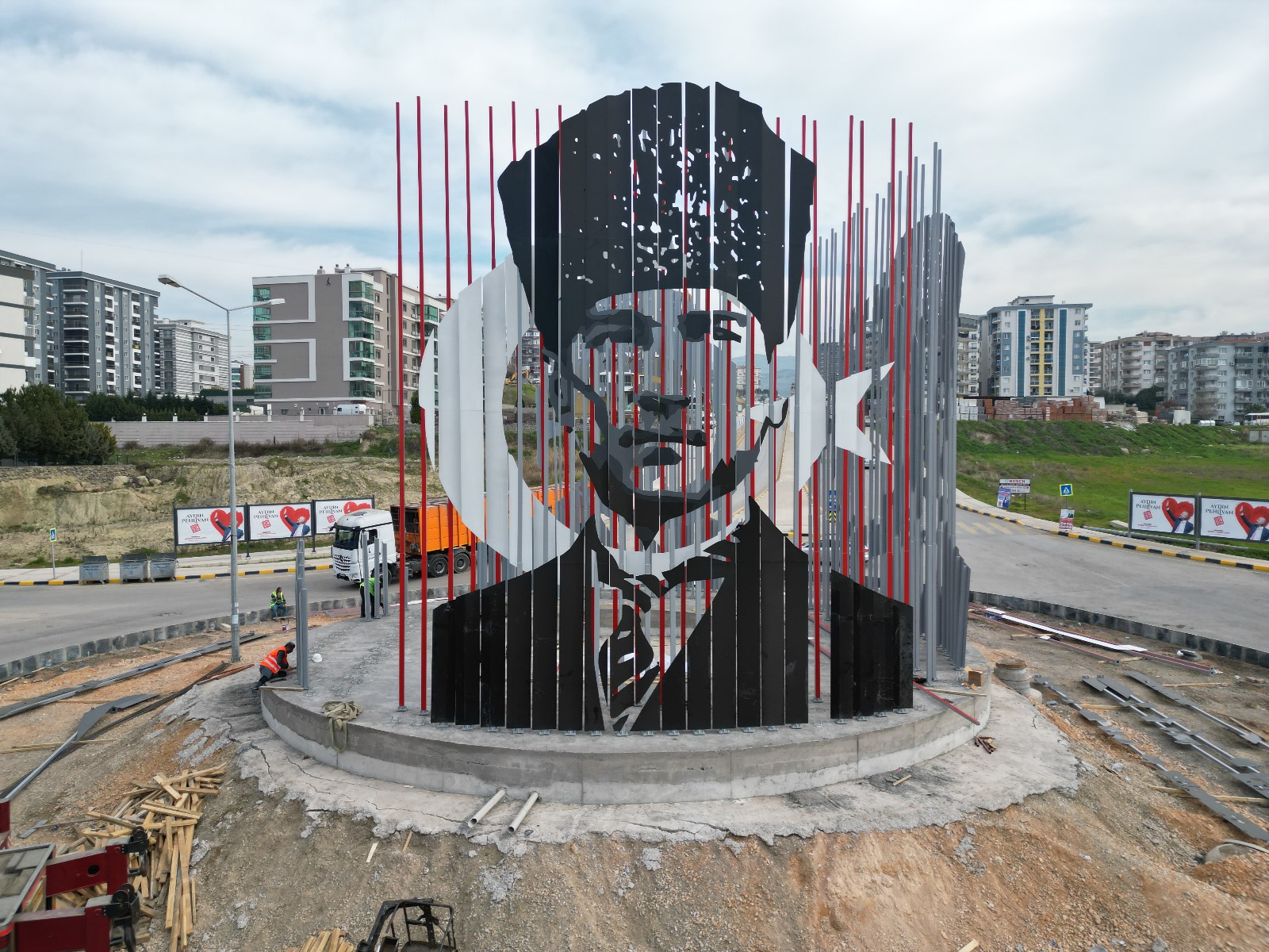 Eser belediyeciliği ve ilçeye yaptığı estetik dokunuşlarla Menemen'i İzmir'in parlayan yıldızı haline getiren Menemen Belediyesi, caddelerde kentin ruhuna uygun projeleri hayata geçirmeye devam ediyor. Son olarak Koyundere Kavşağı'nda dört adet dev boyutlu Türk bayrağının da yer aldığı peyzaj çalışmasını tamamlayan ve ilçe girişlerine Menemen'i simgeleyen öğelerle zenginleştirilmiş taklar yerleştirmeye başlayan Menemen Belediyesi, bu kez de dört cepheden görülebilen Atatürk Anıtı'nı açmaya hazırlanıyor.