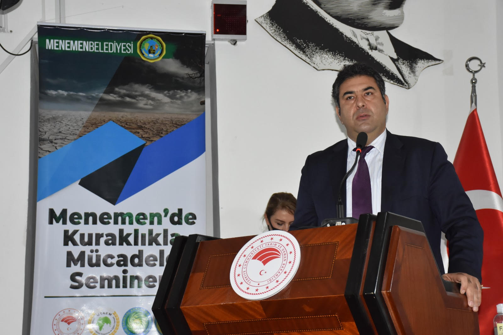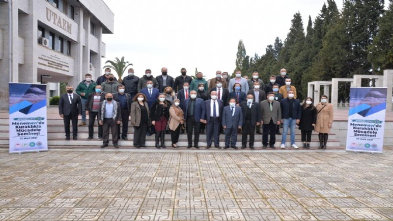 Menemen Belediyesi, Tarım ve Orman Bakanlığı, Ege Tarımsal Araştırma Enstitüsü Müdürlüğü, İlçe Tarım Müdürlüğü, Ziraat Odası ve Uluslararası Tarımsal Araştırma ve Eğitim Merkezi(UTAEM) tarafından düzenlenen 'Menemen'de Kuraklıkla Mücadele' semineri, Menemen Kaymakamı Fatih Yılmaz, Menemen Belediye Başkan V. Aydın Pehlivan, İl Tarım Müdürü Mustafa Özen, Menemen İlçe Tarım Müdürü Fatih Çiçek, Ege Tarımsal Araştırma Enstitüsü Müdürü Dr. Ali Peksüslü, Menemen Ziraat Odası Başkanı Arif Metin Karagöl, UTAEM Müdürü Tuncay Topdemir, Milliyetçi Hareket Partisi Menemen İlçe Başkanı Ali Rıza Bölük, meslek odaları başkanları, muhtarlar ve Menemenli çiftçilerin katılımıyla düzenlendi.