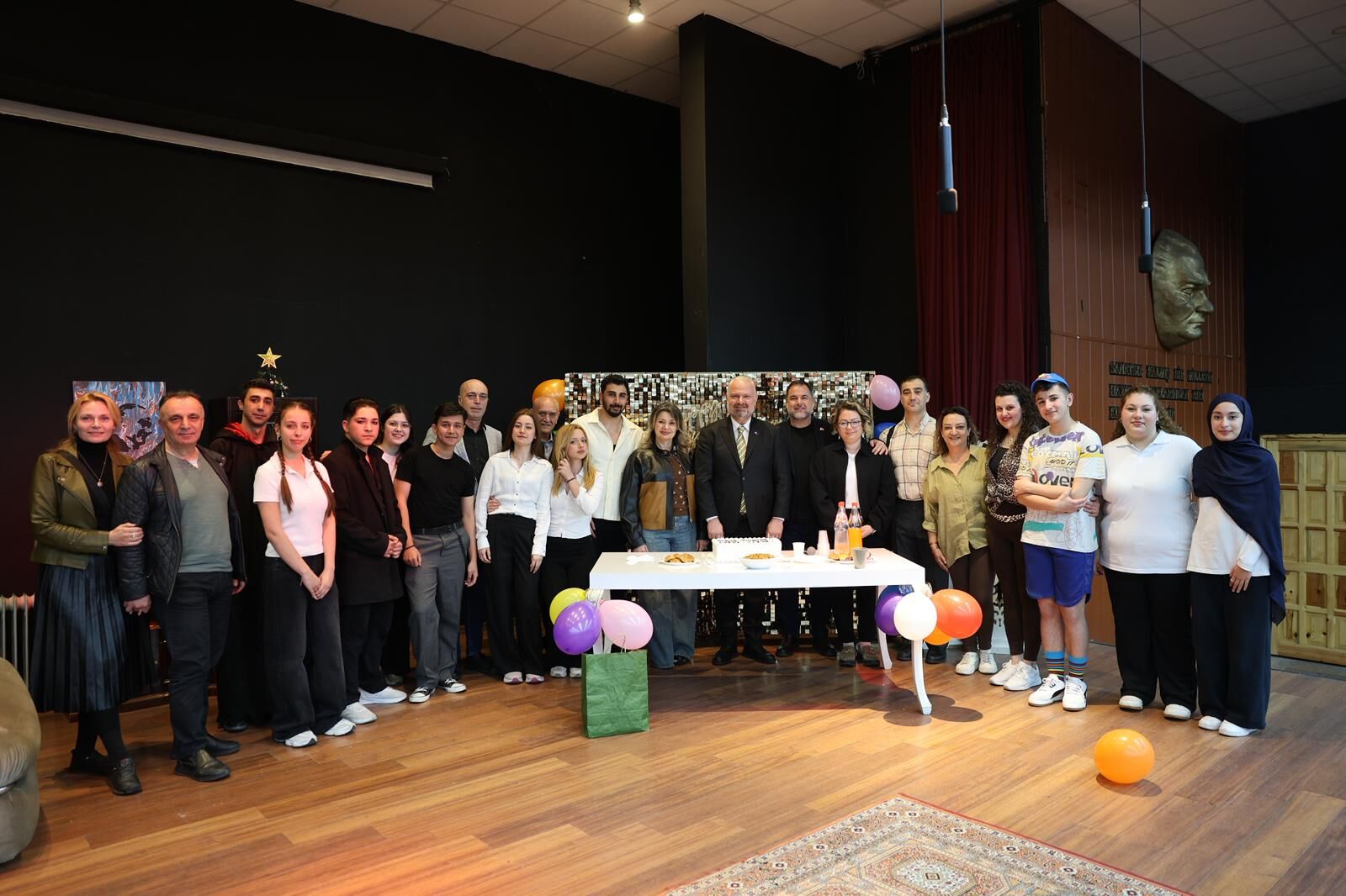 Oyunun sonundaysa Dünya Tiyatrolar Günü, sahnede kutlandı. Başkan Aydın Pehlivan, eşi Filiz Pehlivan ve oyuncularla birlikte hazırlanan pastayı kesti.