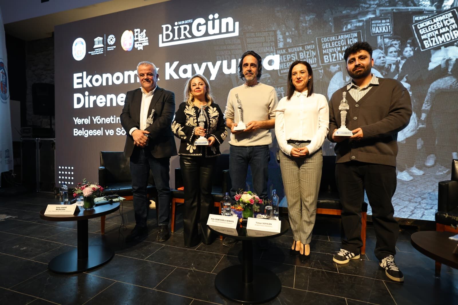 Belgeselin ardından gerçekleşen söyleşinin moderatörü Dilek Gappi, farklı kayyum uygulamalarının Türkiye’nin çeşitli kentlerinde yaşandığını İzmir üzerinden örneklendirerek; “Türkiye adına, Türkiye’nin tarihine not düşülmesi adına; bir halkın, bir kentin ayağa kalkarak hakkını araması bence çok değerli bir mücadele. Başta Filiz Başkan olmak üzere direnişe katılan herkese sevgilerimi gönderiyorum. Aycan Karadağ başta olmak üzere belgesele emek veren tüm meslektaşlarıma teşekkür ediyorum. Artık öyle bir noktadayız ki; evet, Selçuk bir sembol. Son bir haftada İzmir bambaşka bir mücadele veriyor. Üç binasına birden el konulmaya çalışılıyor. Bunların hiçbiri kabul edilemez. Bu direniş öykülerinden Türkiye’nin çok daha güçlü modeller çıkaracağına eminim” dedi.