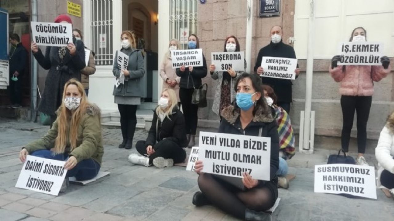 Konuşma yapan eğitimcilerden biri olan Özlem Uçak ise düzenli bir işlerinin olmadığından yakındı. 2017 yılından itibaren İzmir Büyükşehir Belediyesi'nde çalıştığını belirten Uçak 'İşlerimiz ihale usulü gerçekleşiyor. Her yıl Aralık ayında işimize son veriliyor ve mart civarında yeniden işe başlıyoruz. Taleplere göre kurslar açılıyor. Burada bir ay çalışan da var, dokuz ay çalışan da var. Düzenli bir işimiz yok. İstediğimiz sadece düzenli bir iş ve sigorta. Emeklilik istiyoruz. Benim yaşım gelmesine rağmen günüm dolmadığı için emekli olamıyorum. Tek istediğimiz düzenli bir iş ve sigorta başka da hiçbir talebimiz yok' ifadelerini kullandı.