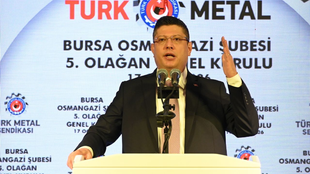 Bakın Osmangazi Şubemiz son dört yılda beş yeni işyerini ailemize kattı. O işyerlerinde toplu sözleşme imzaladı. Bir işyeri için de yasal süreç devam ediyor. Yaşanan her türlü zorluğa, kötü niyetli işverenlerin baskılarına rağmen Türk Metal olarak 2025 yılında 17 işyerinde örgütlendik. Örgütlenme mücadelemize kararlılıkla devam edeceğiz. Bugüne kadar olduğu gibi bundan sonra da nerede bir hak arayışı varsa orada olacağız. Türk Metal diyen tek bir metal emekçisi dahi olsa onun yanına gideceğiz. Onu yalnız bırakmayacağız. Türk Metalli olmanın ayrıcalığını ona yaşatacağız. Özellikle aramıza yeni katılan arkadaşlarımız için söylüyorum. Bizi bu kutsal çatının altında bir araya getiren, Türk Metal bayrağı altında birleştiren e-devletten elde edilmiş sade bir üyelik değildir. Bizi, birbirimize böylesine kenetleyen, yalnızca metal sektöründe çalışıyor olmamız da değildir. Bizi biz yapan, bizi böylesine kenetlenmiş, sıkılı bir yumruk haline getiren aynı duygularla, aynı özlemlerle çarpan yüreklerimizdir. Sendikamızın her duvarında yazılı olduğu gibi üretmek, kazandırmak ve hakça kazanmak için coşkuyla atan yüreklerimizdir. Bizi birbirimize bağlayan ideallerimizdir, mücadelemizdir, hayallerimizdir. Sözünü ettiğim bu değerler inanın bana parayla, pulla ölçülmez. El ele, gönül gönüle verilen bir mücadelenin helal kazanılmış bir ekmeği bölüşmenin verdiği hazzın maddi bir karşılığı yoktur. Onu ancak yaşayanlar bilir. Onu ancak yaşayanlar anlar. Onu ancak Türk Metalliler bilir. Türk Metalliler anlar.