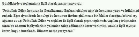Ayrıca Taraf'ta bugün yayınlanan, Cumhurbaşkanı Ahmet Necdet Sezer, Başbakan Recep Tayyip Erdoğan, Genelkurmay Başkanı Hilmi Özkök ve Dışişleri Bakanı Abdullah Gül imzalı MGK belgesinde ise 'Fethullah Gülen hareketinin yurt içi ve yurt dışı faaliyetlerine karşı bir eylem planı hazırlanmasının uygun görüldüğü' ifadeleri bulunuyordu.