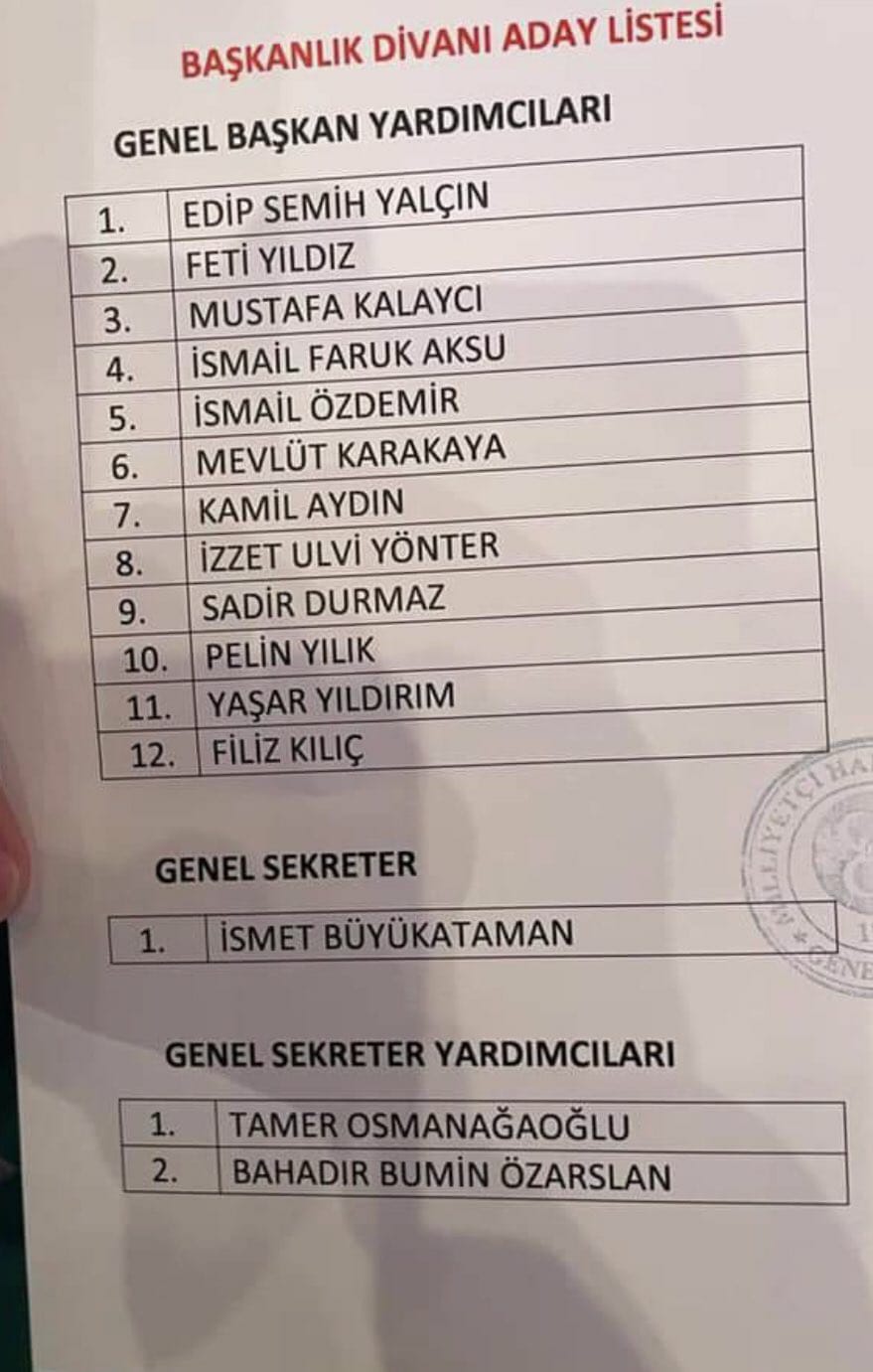 Yapılan açıklamaya göre, MHP MYK'da görev alan isimler şu şekilde: