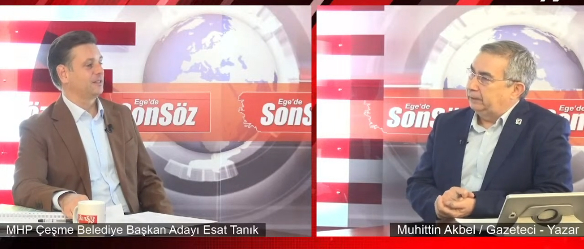 EGEDESONSÖZ – Cumhur İttifakı'nın Çeşme Belediye Başkan adayı MHP'li Esat Tanık, SONSÖZ TV'de Gazeteci yazar Muhittin Akbel'in konuğu oldu. Ortaokul, lise ve üniversiteyi ABD'de okuyan, siyaset bilimi eğitimi alan ve 2006 yılında Türkiye'ye dönen Esat tanık, çocukluğundan beri siyasetle uğraştığını, Süha Tanık, merhum Ahmet Piriştina gibi İzmir ve Türk siyasetine damga vurmuş siyasetçileri yetiştiren bir ailenin ferdi olduğunu anlattı. Çeşme'nin hizmete aç bir ilçe olduğuna vurgu yapan Tanık, projelerini açıkladı, 'Çeşme, hizmete tanık olacak' ifadesini kullandı.