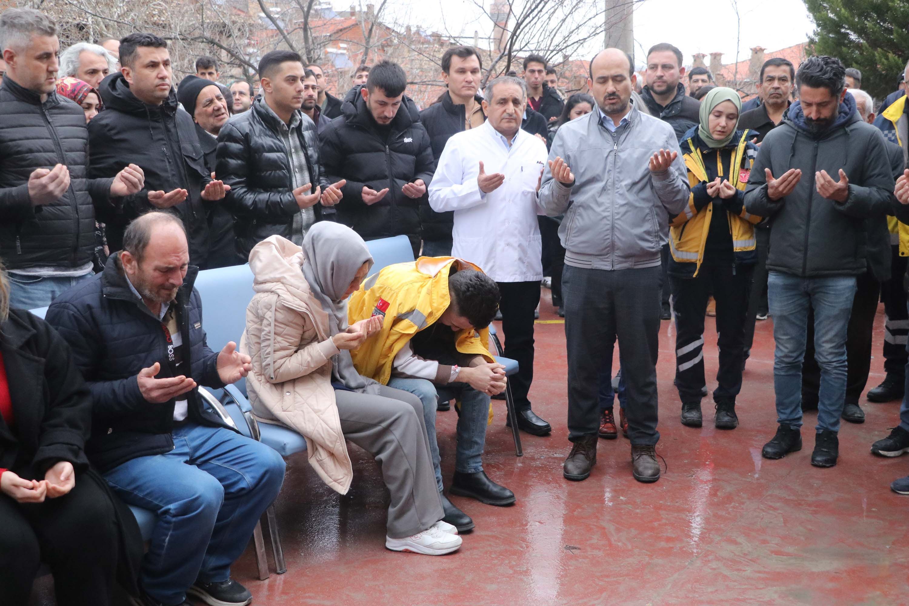 Denizli'nin Buldan ilçesinde memurları taşıyan servis midibüsünün devrildiği kazada hayatını kaybeden Kadriye Koçan (23) için klinik destek elemanı olarak çalıştığı Buldan Göğüs Hastalıkları Hastanesi Acil Servisi önünde tören düzenlendi. Törene sağlık çalışanları, Koçan’ın eşi Furkan Koçan (25), ailesi ve yakınları katıldı. 6 ay önce evlendiği eşi Furkan Koçan, törende gözyaşlarına hakim olamadı. Koçan'ı sağlık çalışanları teselli etmeye çalıştı.