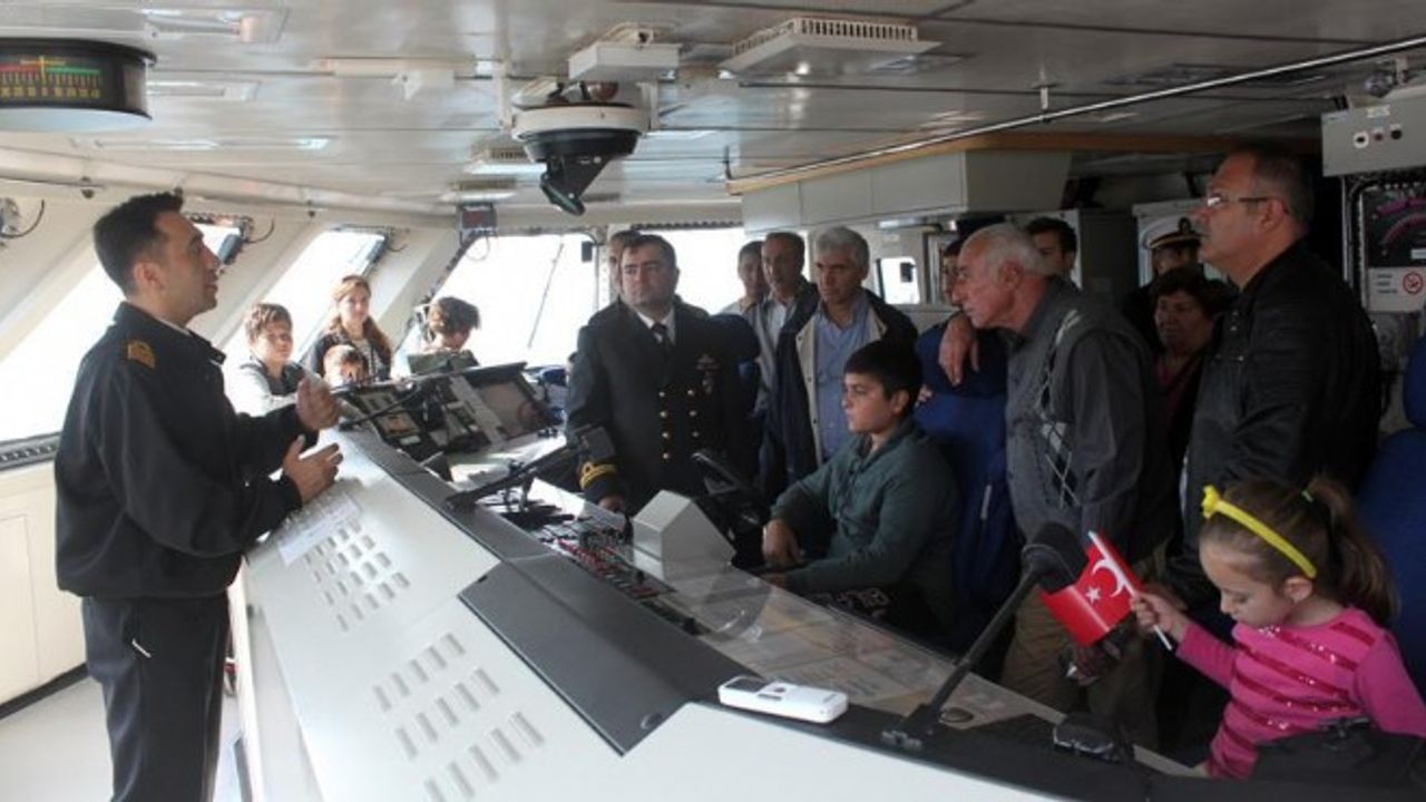 Geminin köprü bölümüne çıkan vatandaşlara, geminin faaliyetleri ve cihazları hakkında bilgi veren Deniz Binbaşı Bayram, korvetin milli imkan ve kaynaklar ile üretilen ilk gemi olduğunu belirtti.
