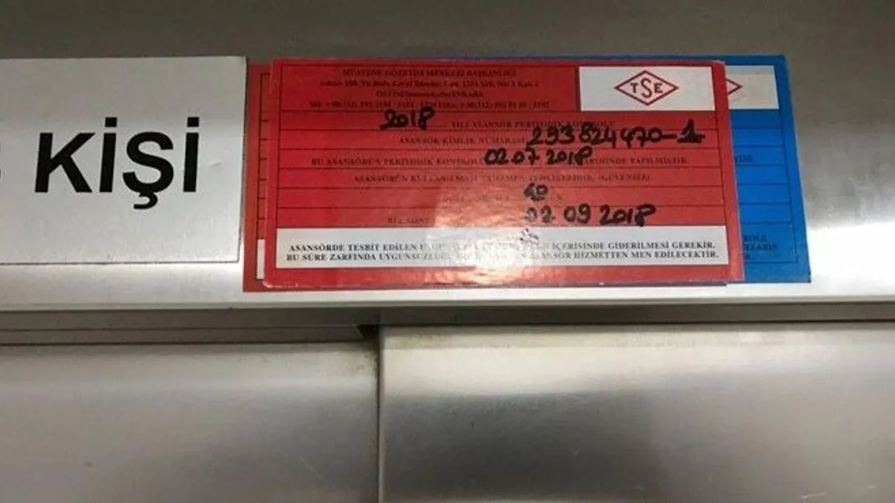 - 3 bin 555 asansör, kullanımının güvenli olmadığı ve gerekli düzeltmeler yapılıncaya kadar hizmet dışı bırakılması gerektiği anlamına gelen kırmızı etiket,