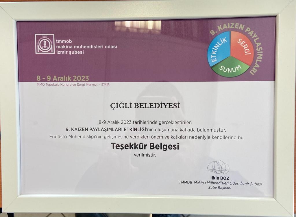 2014 yılından itibaren Makine Mühendisleri Odası İzmir Şubesi tarafından kurumlarda sürekli iyileştirme ve sürdürebilirliğin sağlanması amacıyla düzenlenen Kaizen Paylaşımları'nın dokuzuncusu Tepekule Kongre Merkezi'nde gerçekleştirildi. Çiğli Belediyesi, 'TSE EN ISO 9001:2015 Kalite Yönetim Sisteminin QDMS ile Dijital Hale Getirilmesi' projesi ile sergilenmeye değer görülen 180 proje arasında yer alan tek kamu kurumu oldu. Etkinliğe ev sahipliği yapan Makine Mühendisleri Odası İzmir Şubesi, endüstri mühendisliğinin gelişmesine verdiği önem ve katkılardan dolayı Çiğli Belediyesi'ne Teşekkür Belgesi takdim etti.