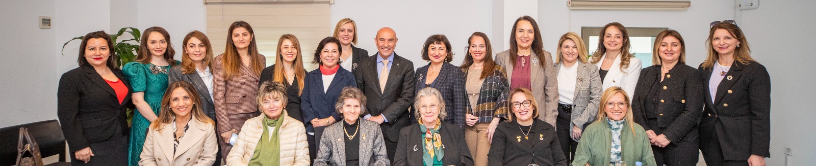 Türk Üniversiteli Kadınlar Derneği (TÜKD), Ege İş Kadınları Derneği (EGİKAD) ve İzmir İş Kadınları Derneği (İZİKAD), İzmir Büyükşehir Belediye Başkanı Tunç Soyer'i Kültürpark İzmir Sanat'taki makamında ziyaret etti. Ziyarette TÜKD Genel Başkanı Meral Güler, EGİKAD Yönetim Kurulu Başkanı Şahika Aşkıner, İZİKAD Yönetim Kurulu Başkanı Özden Erten ve üyeler yer aldı.