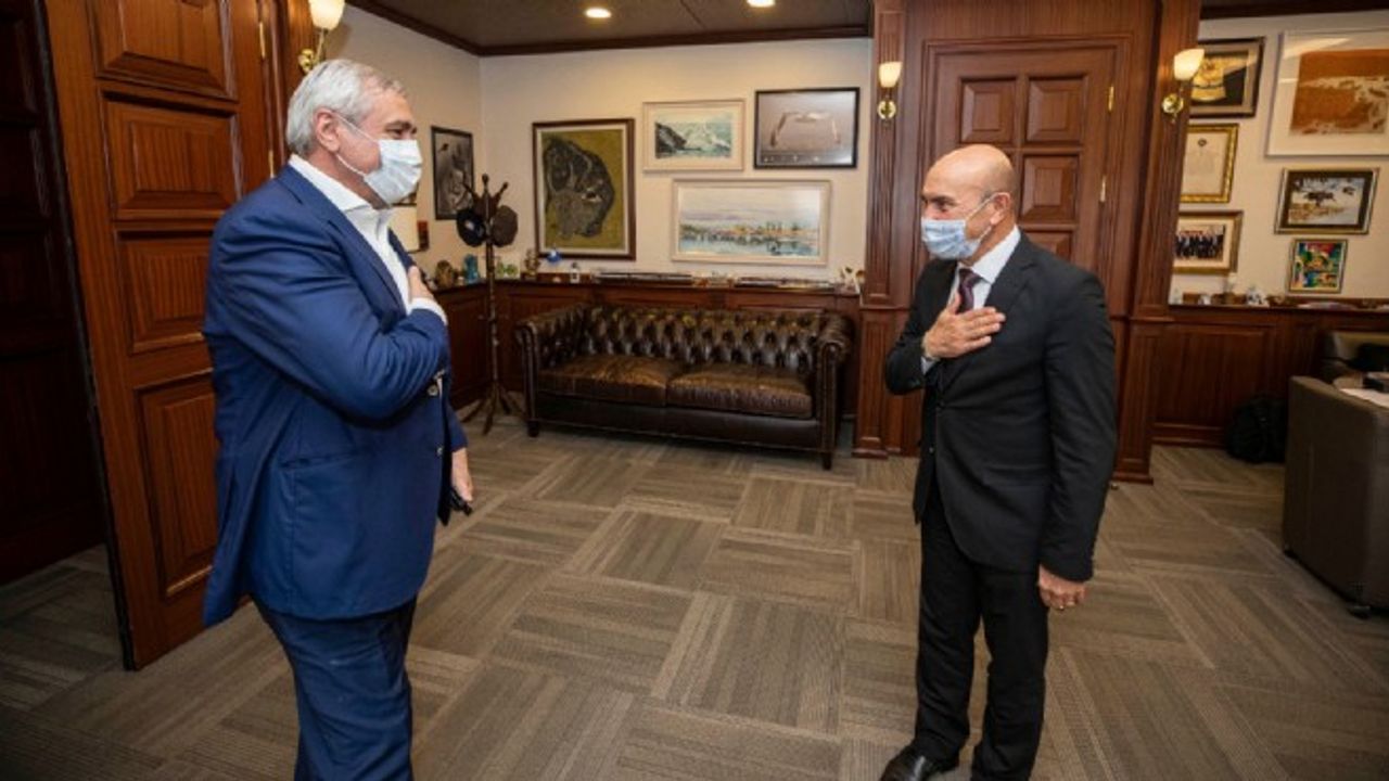 Rusya-Türkiye İş Konseyi heyeti İzmir Büyükşehir Belediye Başkanı Tunç Soyer'i makamında ziyaret etti. Rusya-Türkiye İş Konseyi Başkanı Ahmet M. Palankoyev, Başkan Yardımcısı ve Uluslararası İş Destek Merkezi (ICBA) Başkanı Adam M. Lyanov, Rusya-Türkiye İş Konseyi Türkiye Temsilcisi Hakan Cihaner'in bulunduğu heyet, Başkan Soyer ile başta sanal fuarcılık olmak üzere İzmir ve Rusya arasındaki olası işbirlikleri üzerine görüştü.