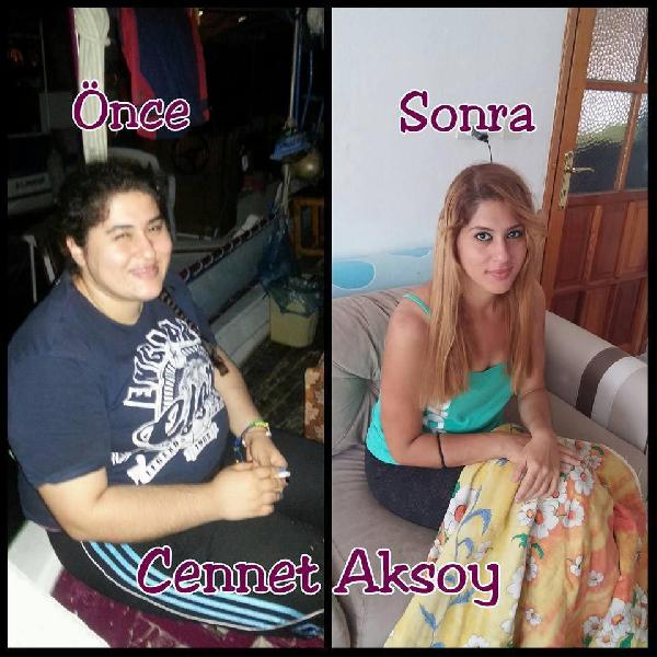 Fazla kiloları yüzünden yürümekte zorlandığını, çevresindekilerin de kendisine acıyan gözlerle baktığını belirten Cennet Aksoy şunları anlattı: 'Bir şey yiyip içtiğim zaman göze batıyordum. Bir gün kendi kendime düşündüm ve diyet yapmaya karar verdim. Ancak diyet konusunda hiçbir bilgi sahibi değildim. Bunun için internette araştırmalar yaptım. Öğünlerini hiç geçirmedim. Çok su içtim. Ekmeği, hamur işini, abur cubur ve şekerli içecekleri bıraktım. Tek düşüncem sağlığımdı. Mükemmel bir sonuç alacağımı ben de tahmin etmiyordum. Güzelliğim ortaya çıktı. Çok mutluyum. Artık çok daha rahat hareket ediyorum. Kuş gibi sekebiliyorum.'